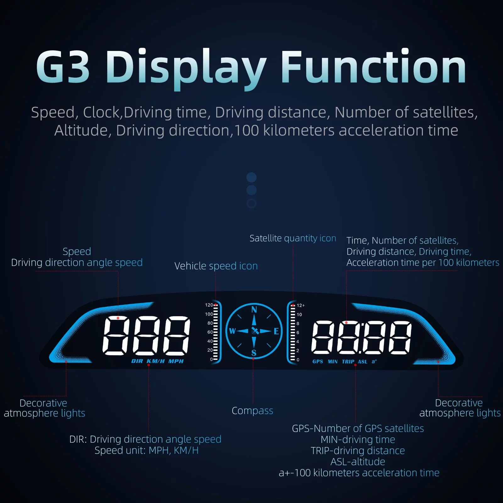 ACECAR Digital GPS Speedometer, Head Up Display with Speed MPH, 100 KM Acceleration Time, Compass, Altitude, Driving Distance, Overspeed Alarm HD LCD Display HUD, for All Vehicle
