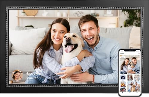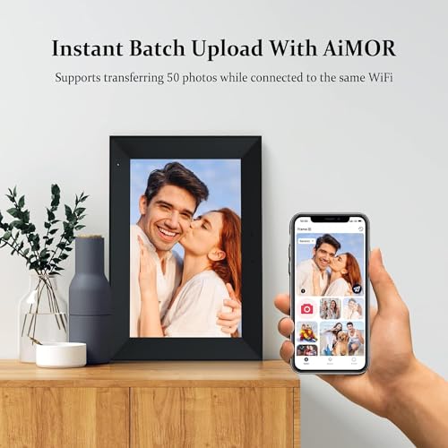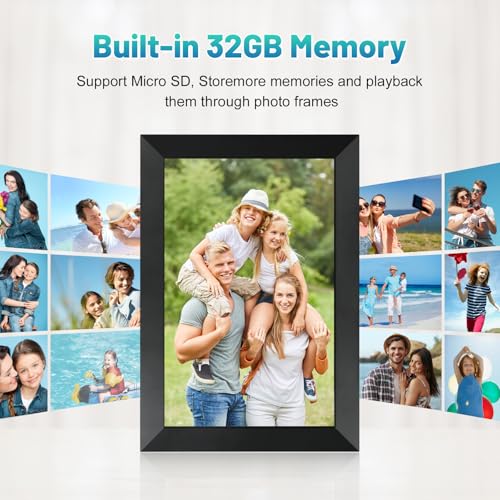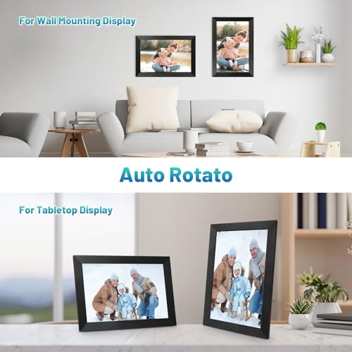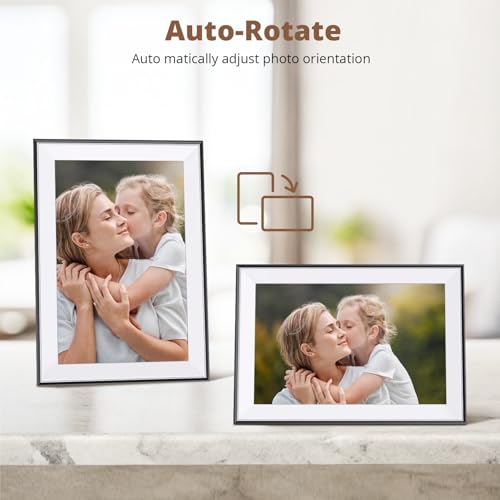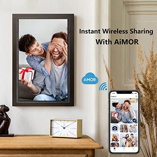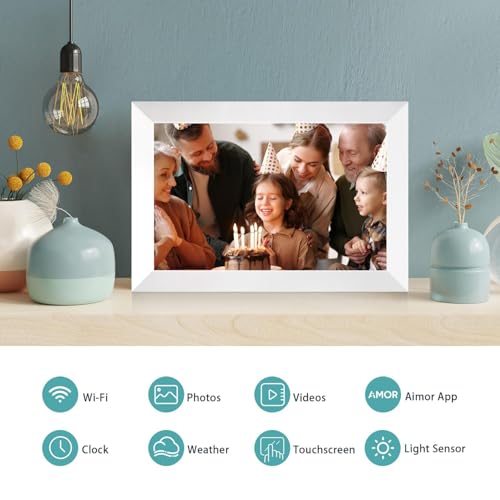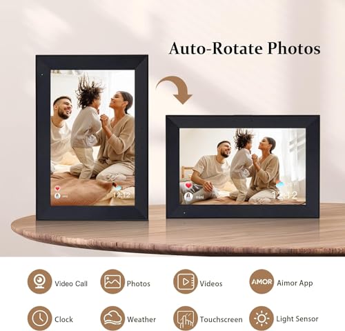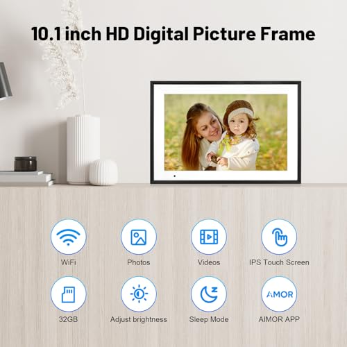 Digital Photo Frame 10.1 Inch WiFi Digital Picture Frame IPS HD Touch Screen Smart Cloud Photo Frame with 32GB Storage, Auto-Rotate, Easy Setup to Share Photos or Videos Remotely via AiMOR APP (Black)