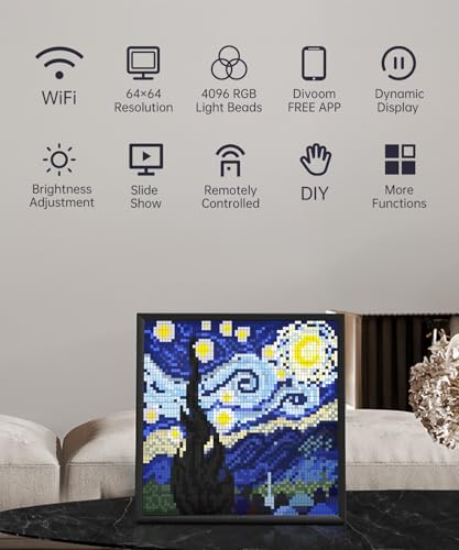 Divoom Pixoo-64 - WiFi Pixel Cloud Digital Picture Frame with APP Control,64 X 64 LED Panel Display Frame for Gaming Room Decoration/Social Media Fans Counter