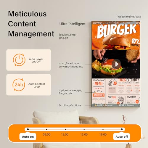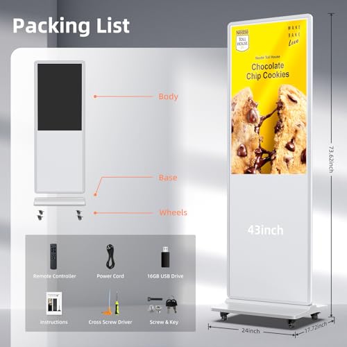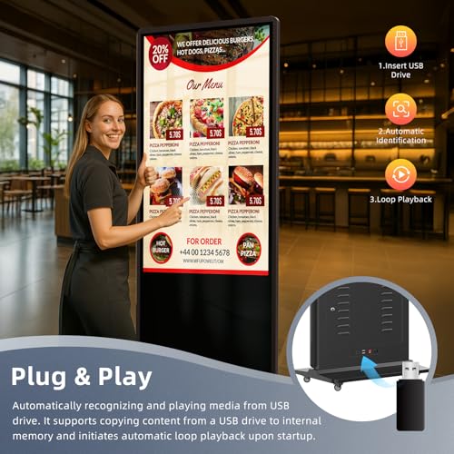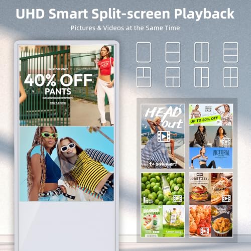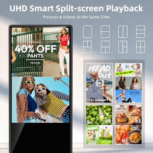 43'' Digital Signage Display Smart Android LCD Sign Kiosk Electronic Menu Board Advertising Display Screen Monitor HDMI WiFi USB 4K Media Video Player (Non Touch Screen,Black)