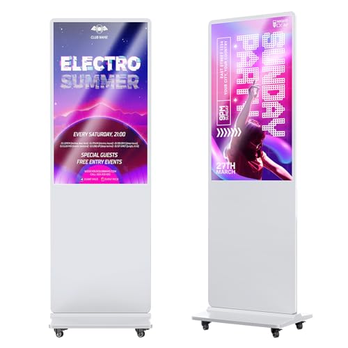 32 inch Digital Signage Kiosk LCD Advertising Display Menu Displays Indoor Floor Standing Vertical Poster White 2+32GB 2K 700nits Android OS with USB