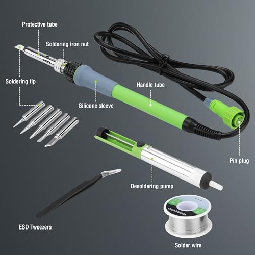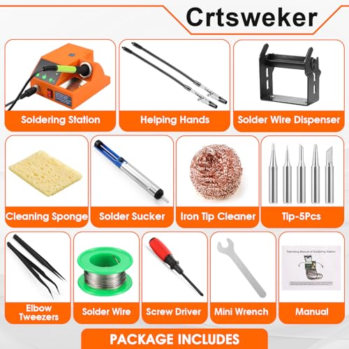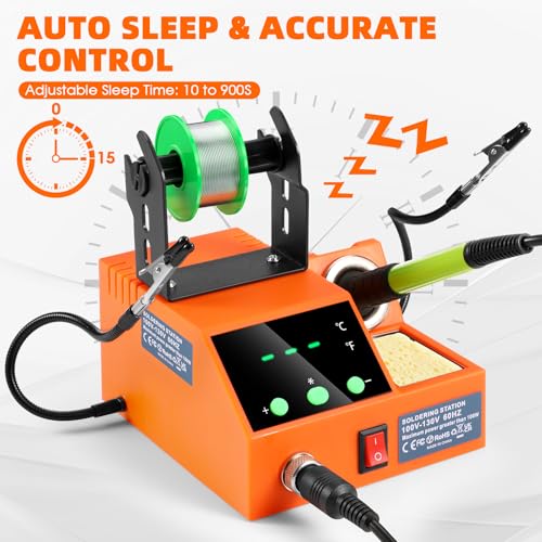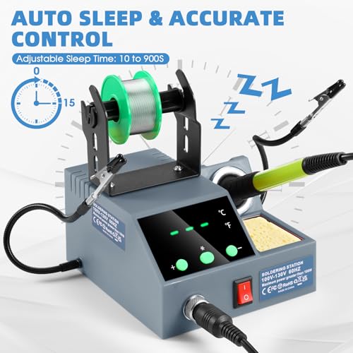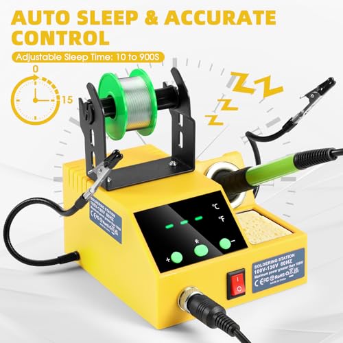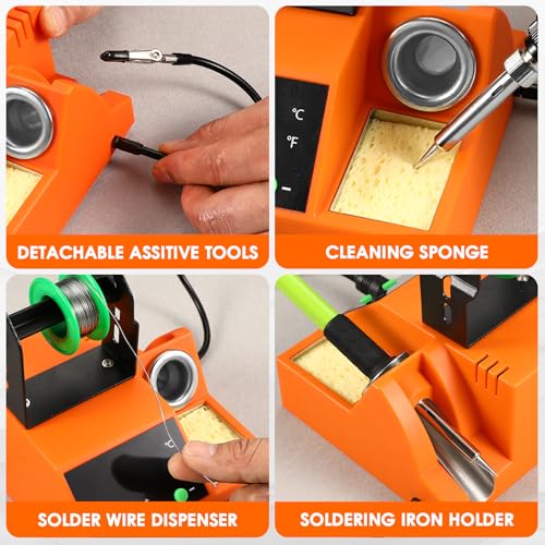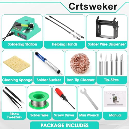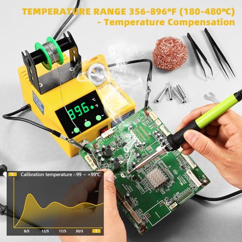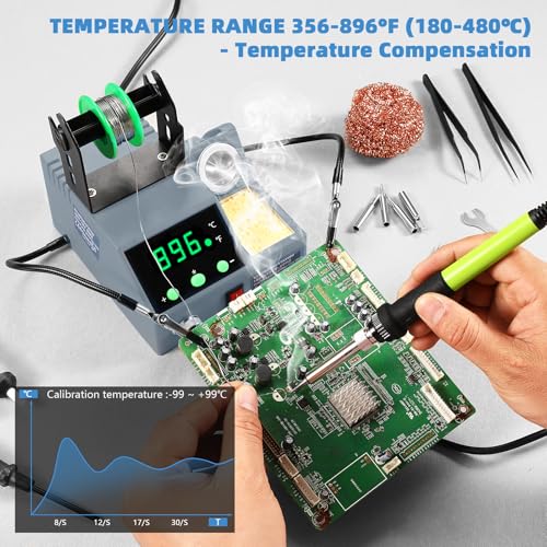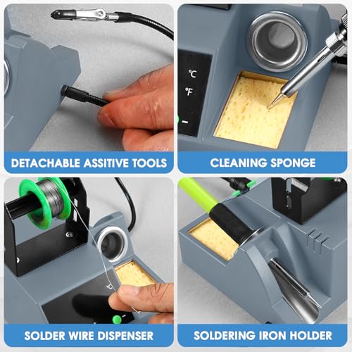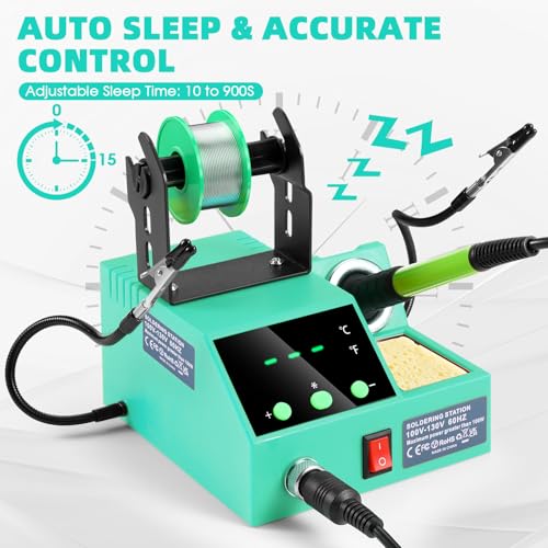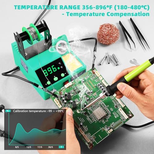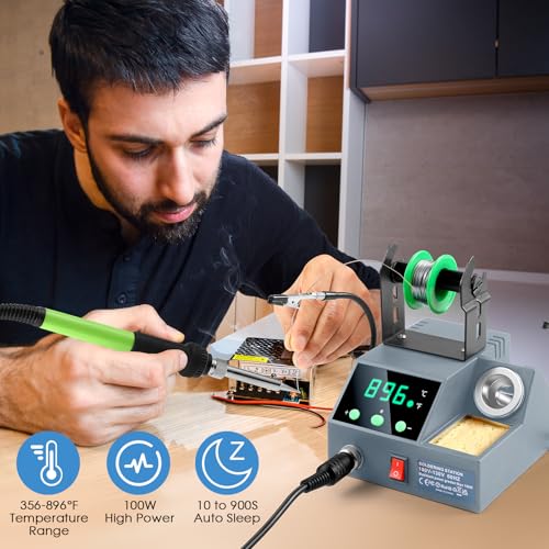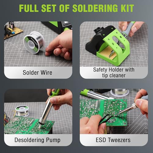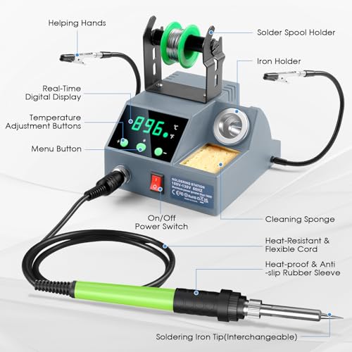 Soldering Station, 100W Digital Display Soldering Iron Station Kit with 2 Helping Hands, 356°F - 896°F, Auto Sleep, °C/°F Conversion, Solder Wire, Tips, Stand, Pump, Tweezers, Tip Cleaner, Green