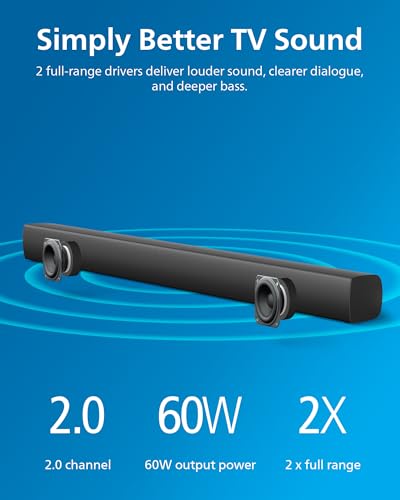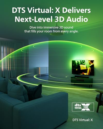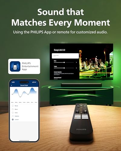 PHILIPS B5109 SoundBar for TV, 2.0 Channel Sound, DTS Virtual:X, Dolby Digital Plus,BT LE Audio, EQ Effects,Night Mode, Easy Setup, EasyLINK, Roku TV Ready, Remote/APP Control, Darkgrey