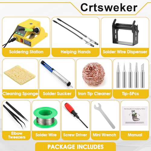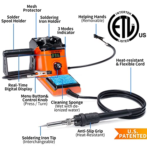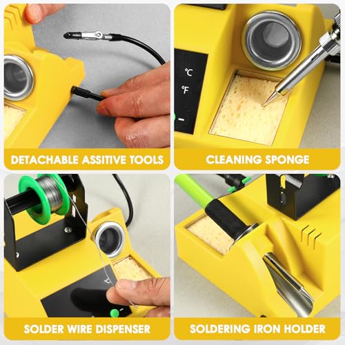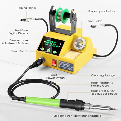 YIHUA 926 III 60W Digital Display Soldering Iron Station Kit w 2 Helping Hands, 6 Extra Iron Tips, Lead-Free Solder, Solder Sucker, S/S Tweezers, °C/ºF Conversion, Auto Sleep & Calibration Support