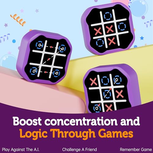 3 in 1 Electronic Tic Tac Toe Game, Handheld Digital Tic Tac Toe Bolt Game with Silent Mode, Portable Learing Toy Gift for Kids & Adults, Purple(One Pack)