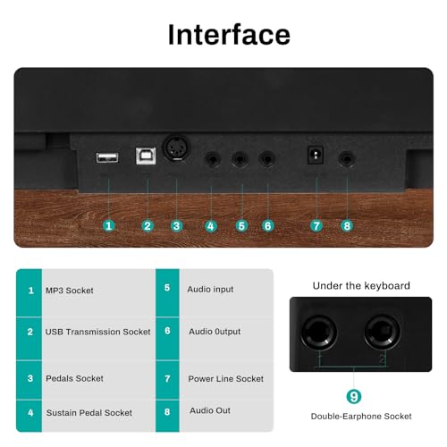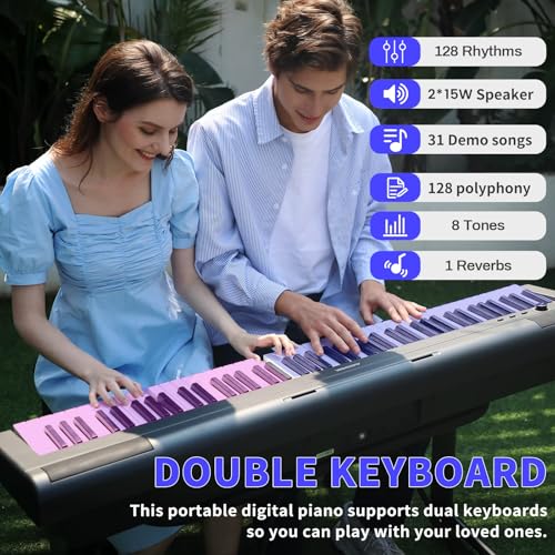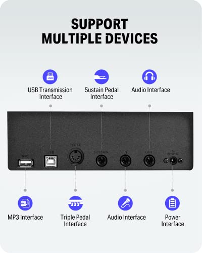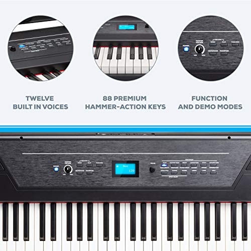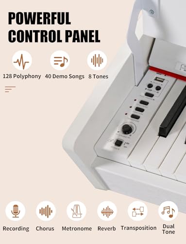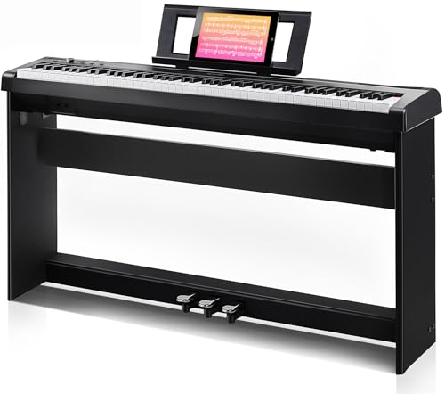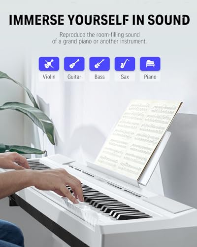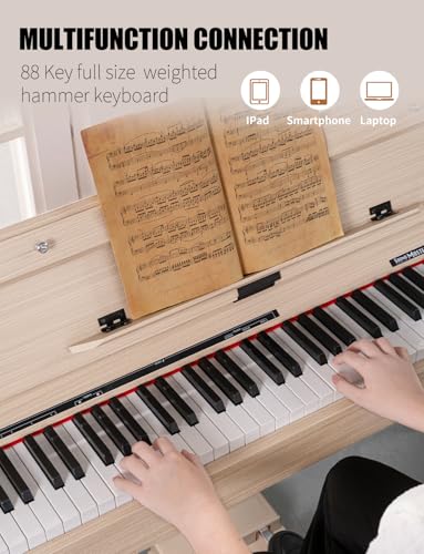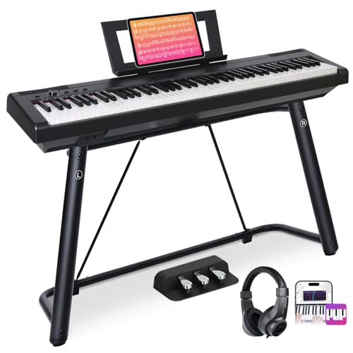 88 Key Digital Piano, Semi Weighted Electronic Keyboard Piano with Music Stand, Power Supply, Sustain Pedal, Stand, Bluetooth, MIDI, for Beginner Professional at Home, Stage