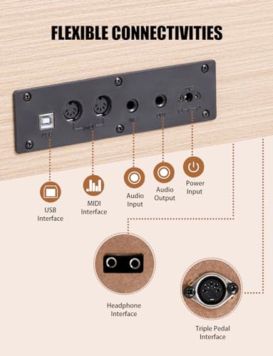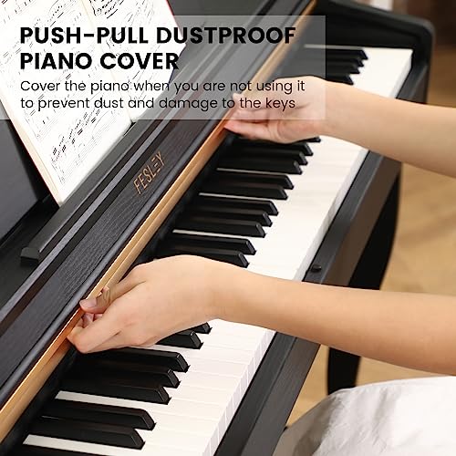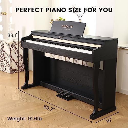 Fesley Digital Piano 88 Key Weighted Keyboard: Home Electric Pianoforte With Hammer Action For Professional,Upright Piano Keyboard with Dual 25W Speakers,Triple Pedal,Support Bluetooth,MIDI USB,Black