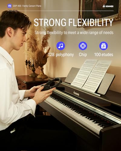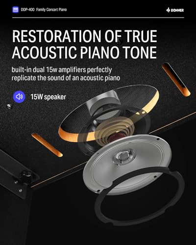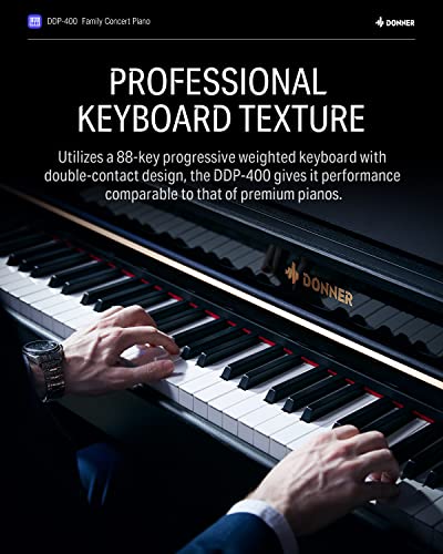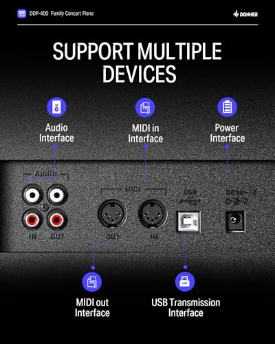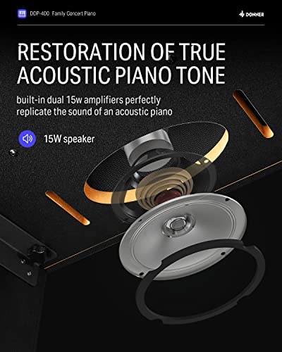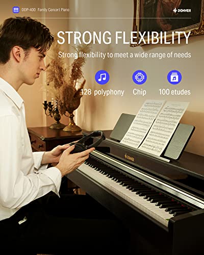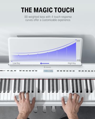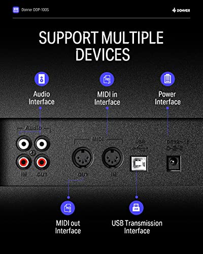 Donner DDP-100 88-Key Weighted Action Digital Piano for Beginner Bundle with Piano Keyboard Stand, Power Adapter, Triple Pedals, MP3 Function, USB-MIDI, 2 Headphone Jacks Black