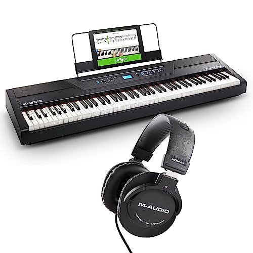 Alesis Recital Pro - 88 Key Digital Piano Keyboard with Hammer Action Weighted Keys, 2x20W Speakers, 12 Voices, Record and Lesson Mode, FX and Display