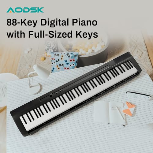 AODSK Weighted Piano 88-Key Beginner Digital Piano,Full Size Weighted keyboard with Hammer Action,with Sustain Pedal,15W Stereo Speakers,MP3 Function,Piano Lessons,Black,S-200