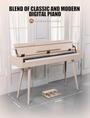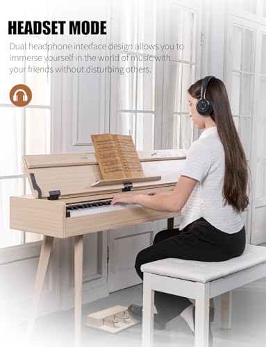 88 Key Weighted Digital Piano - Wooden Desk Electric Piano Transforms Between Desk and Vanity - Progressive Hammer-Action Keyboard, Perfect for Beginners with MIDI Functionality