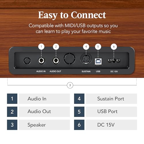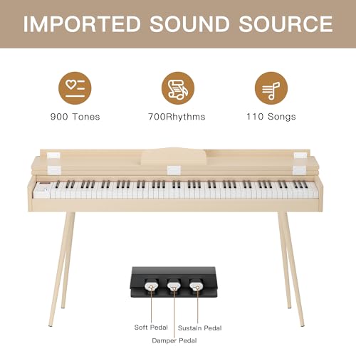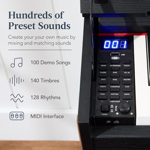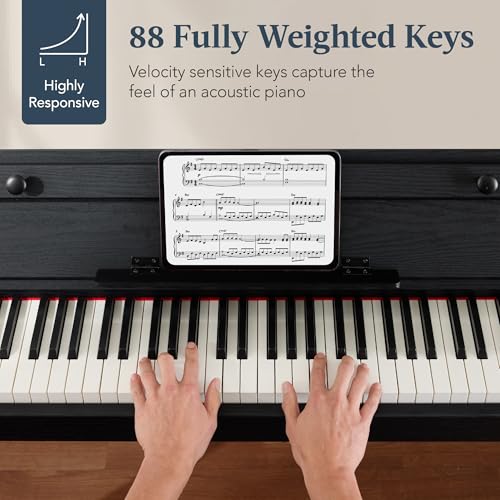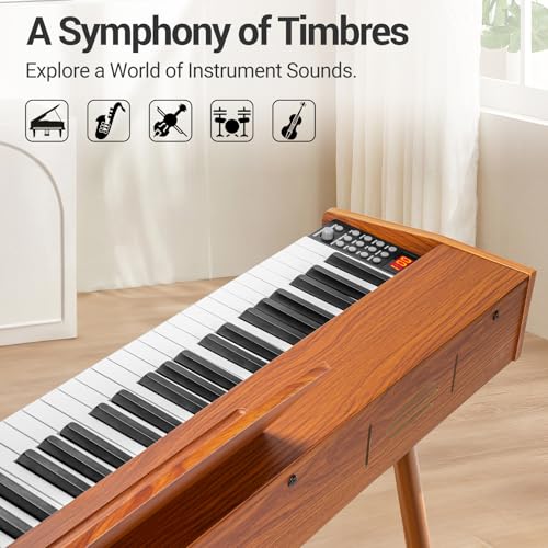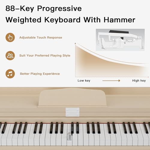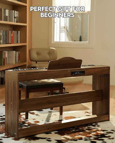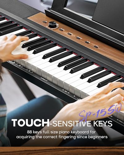 STRICH Digital Piano 88 Keys, Hammer-Action Weighted Keyboard, Full size Electric Piano Keyboard with Stand, 25Wx2 Speakers, Supports USB-MIDI/Wireless Connecting SDP-300SN(Color Walnut Wood)
