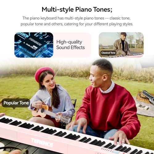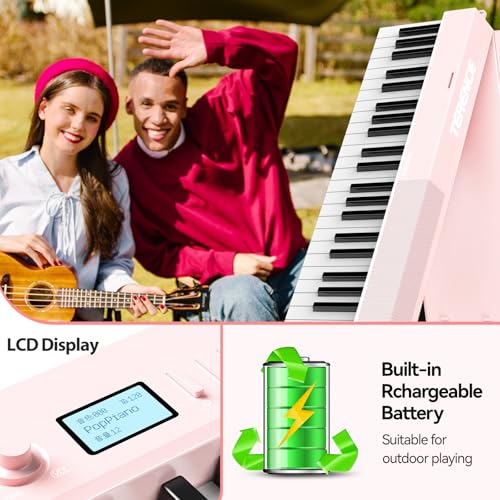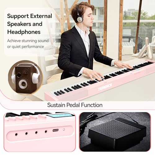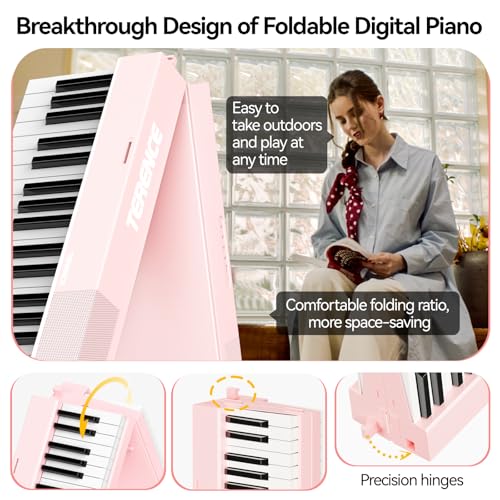 TERENCE V30 Digital Piano 88 Key Weighted Keyboard, Full Size Piano Keyboard with 2X5W Speakers, Music Stand and Sustain Pedal, Portable Folding Piano Gift Teaching for Beginners