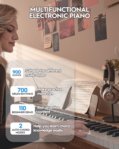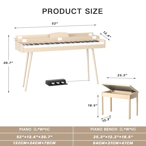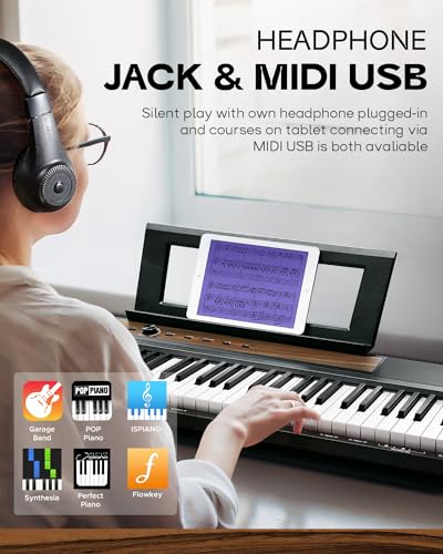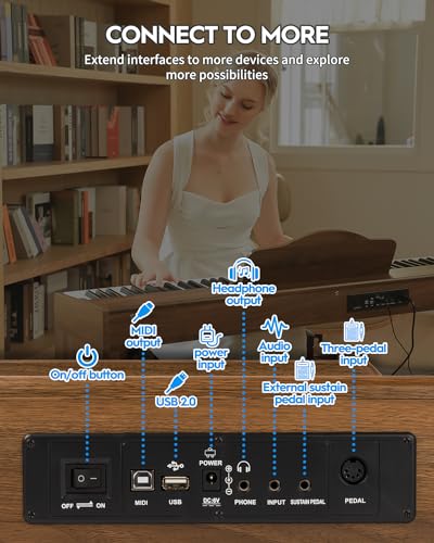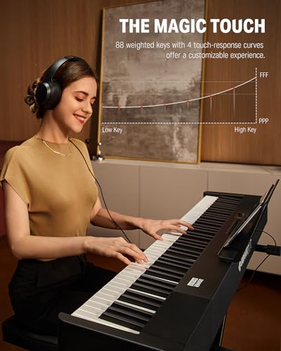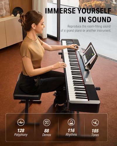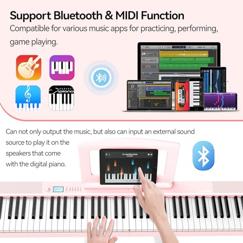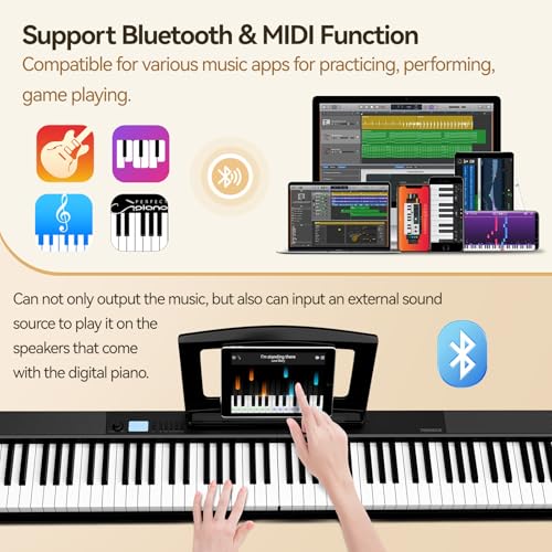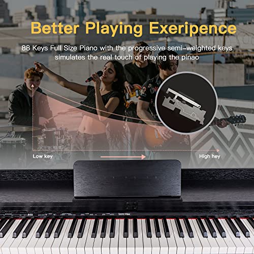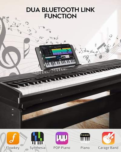 88 Key Digital Piano, Semi Weighted Electronic Keyboard Piano with Music Stand, Power Supply,Bluetooth, MIDI, for Beginner Professional at Home, Stage
