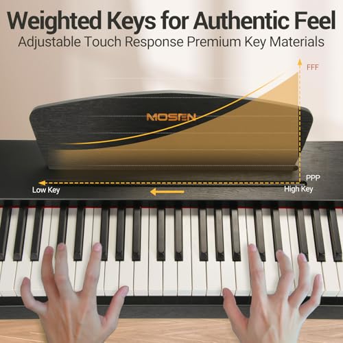 MOSEN Digital Piano 88 Key Weighted Keyboard, Full-size Electric Piano for Beginners, Hammer Action Piano Keyboard, with Sheet Music Stand, Triple Pedal, Power Adapter, USB-MIDI Connecting, Black