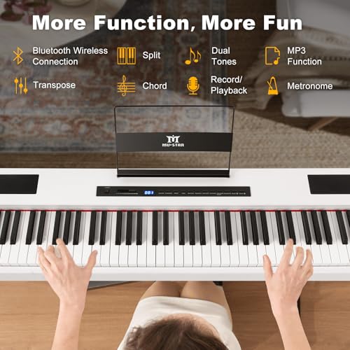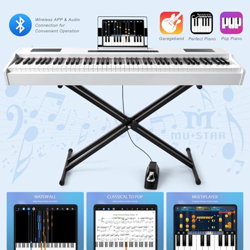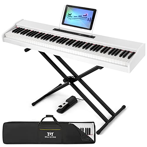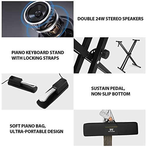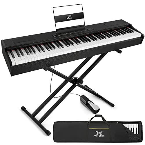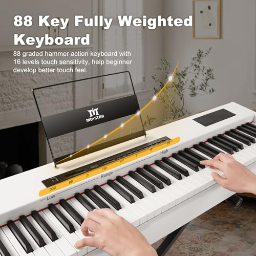 MUSTAR Digital Piano 88 Key Weighted Keyboard Hammer Action, MDP-1200 Weighted Keyboard with Stand, Full Size Electric Piano Keyboard 88 Keys with for Beginners, Portable Case, Sustain Pedal, Black