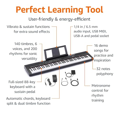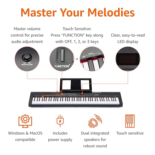 Amazon Basics Electric Keyboard 88-Keys, Semi-Weighted Digital Piano For Performance with Sustain Pedal, Power Supply, 2 Speakers, Lesson Mode, Black