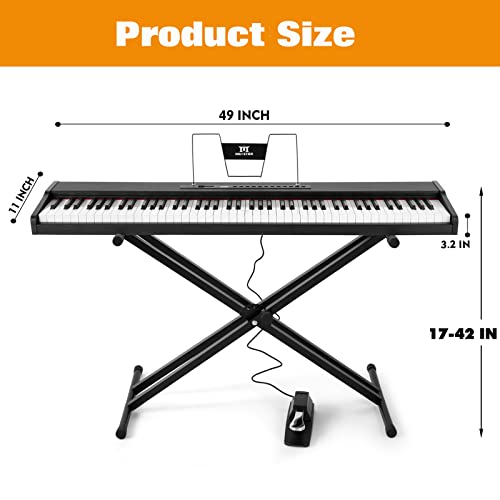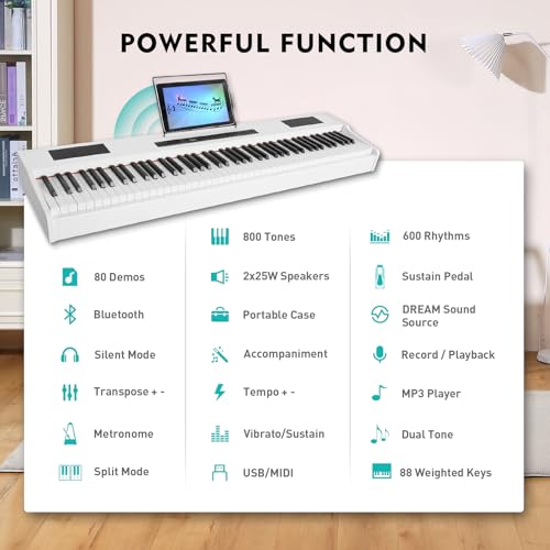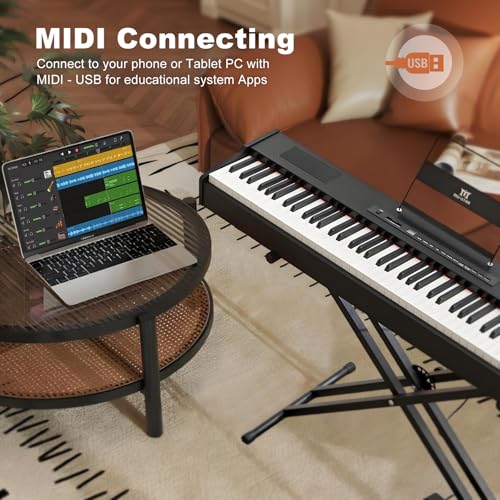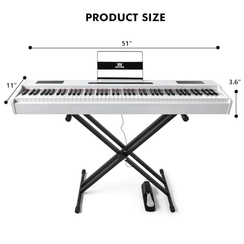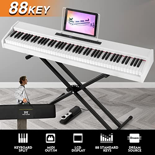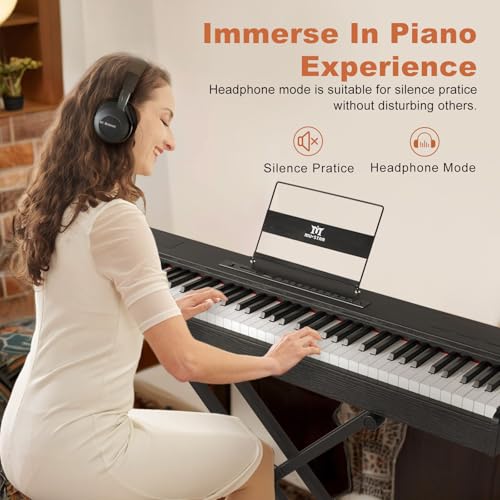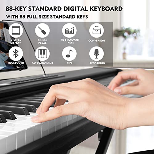 88 Key Piano Keyboard,Beginner Electric Digital Piano with Semi Weighted Keys,Keyboard Piano withSustain Pedal, Power Supply, Stand, Carrying Case,Headphones