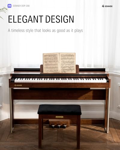 Donner Digital Piano Keyboard Velocity-Sensitive 88 Keys with Removable Piano Stand, Compact Beginner Home Electric Piano with Split Mode, LCD Screen, and Triple Pedal DEP-08