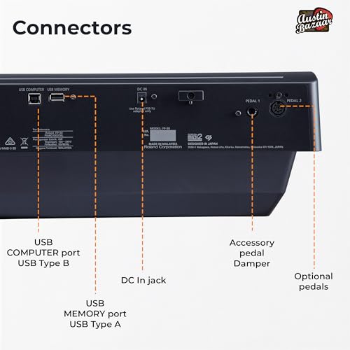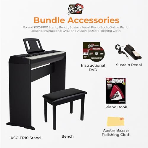 Roland FP-30X 88-Key Digital Piano - Black Bundle with Adjustable Stand, Bench, Sustain Pedal, Online Piano Lessons, Instructional DVD, and Austin Bazaar Polishing Cloth