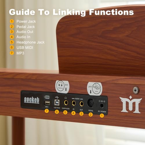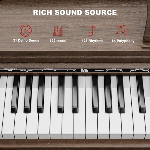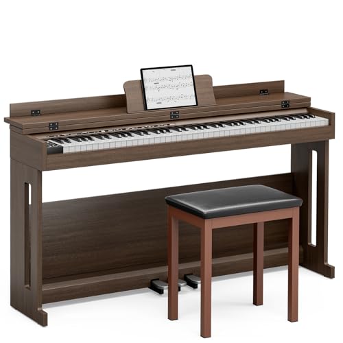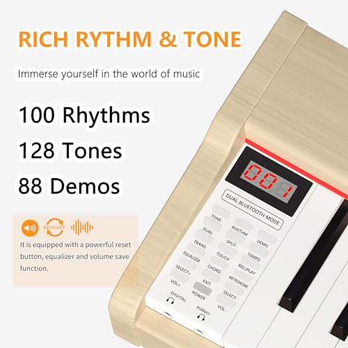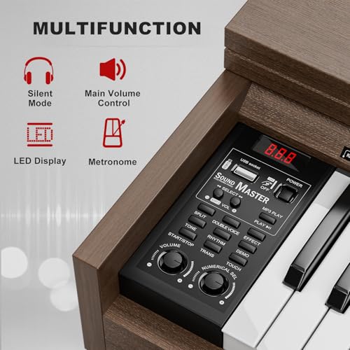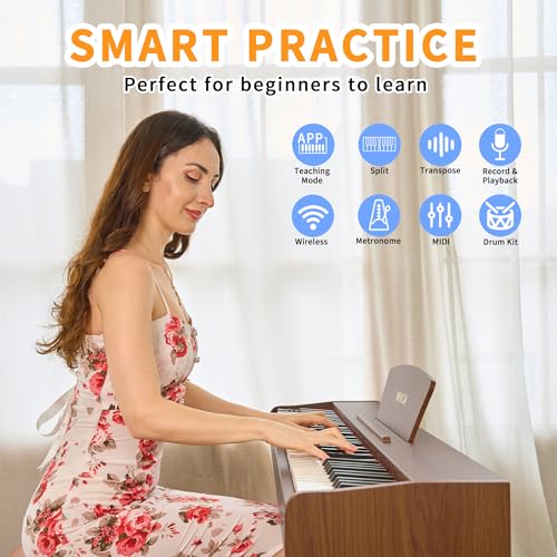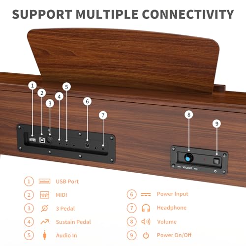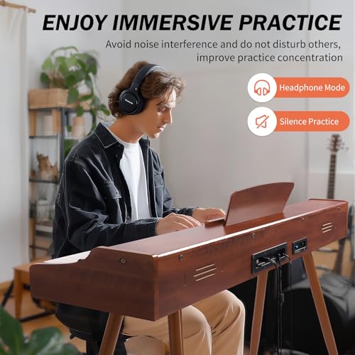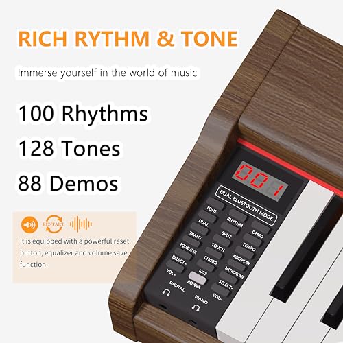 Longeye Digital Piano 88 Keys Wood Piano Keyboard Semi Weighted Electric Piano for Beginners and Professionals with Triple Pedal, Headphone, Music Rest Support MIDI Connection MOOD Walnut