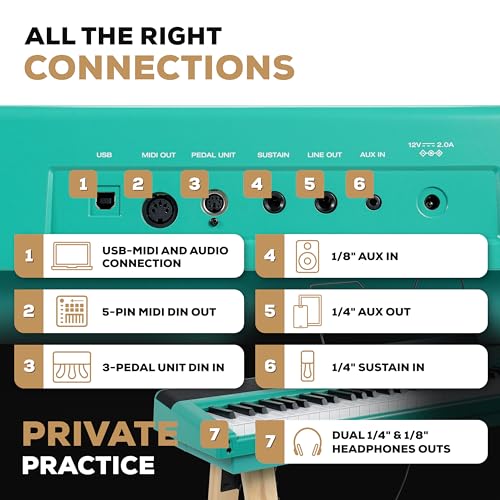 Alesis Recital Home Digital Piano with 88 Hammer Action Weighted Keys, Stand, Pedals and Lessons, Turquoise