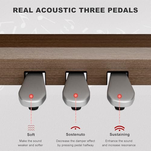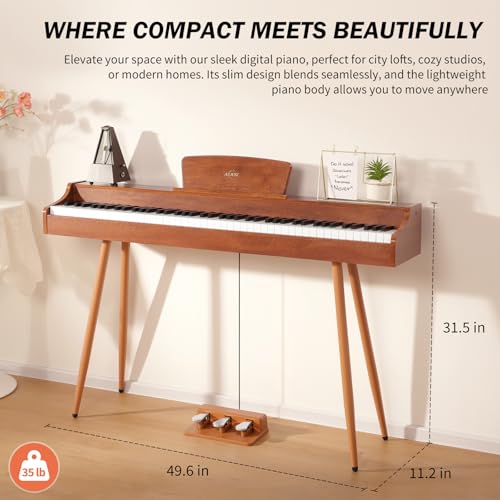 AiJoy Digital Piano 88-Key Weighted Action Keyboard, Home Electric Piano for Beginners with Triple Pedal, Compact Design, Supports MIDI/Headphone Connection, Wood Grain Finish