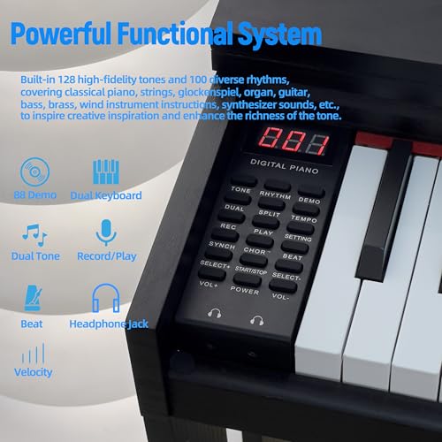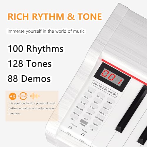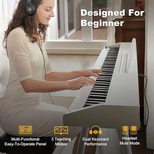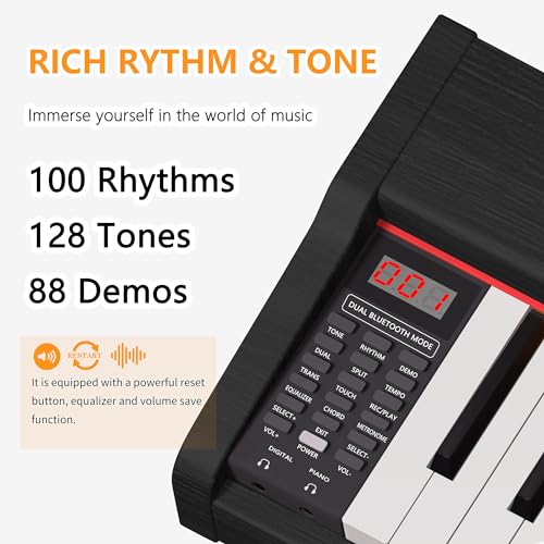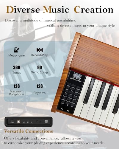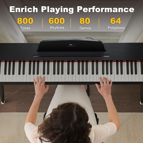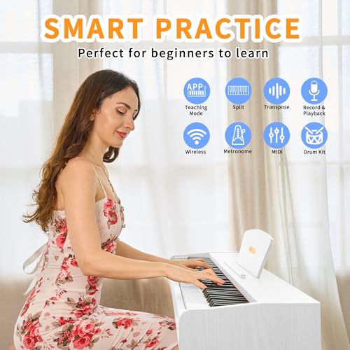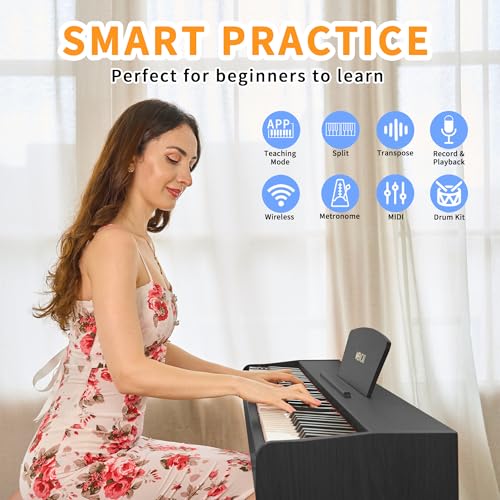88 Key Digital Piano, Semi Weighted Electronic Keyboard Piano with Music Stand, Power Supply, Bluetooth, MIDI, for Beginner Professional at Home, Stage