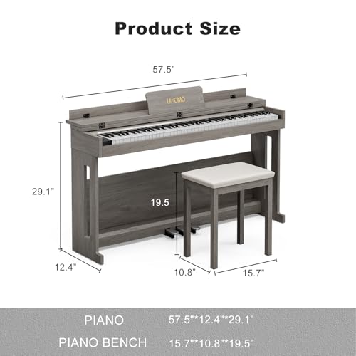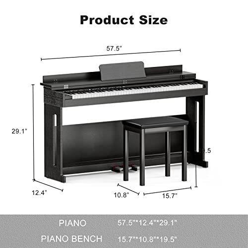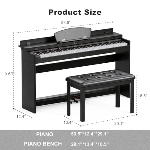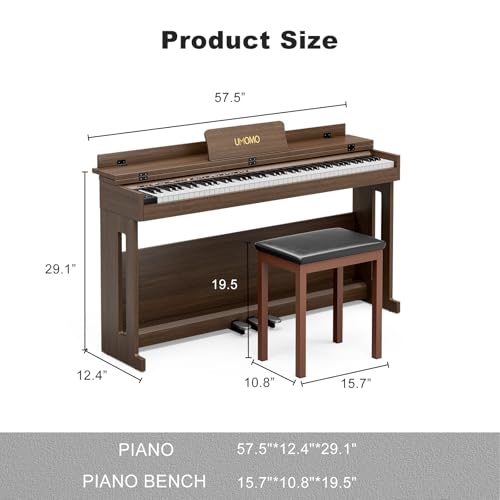 UMOMO 88 Weighted Key Digital Piano with Piano Bench, Hammer Action Electric Piano with Piano Stand, Headphone Jack, 3 Pedal, Full Size Electronic Piano Keyboard for Beginner, Adults, Black