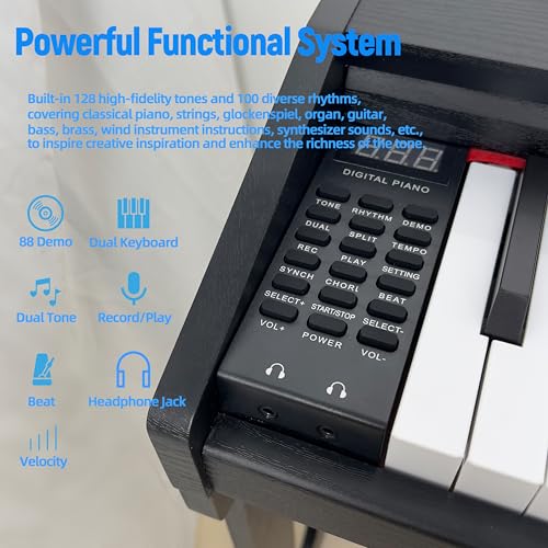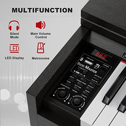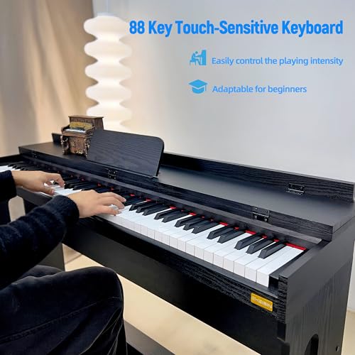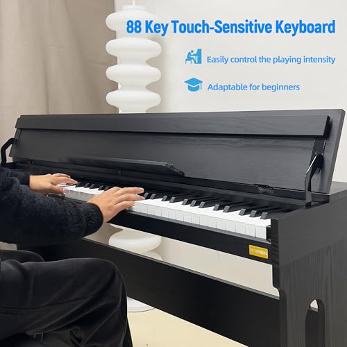 88 Key Fully Weighted Electric Piano Keyboard Hammer Action Full-size Digital Pianos for Beginners Adults Wooden Upright Piano with Sheet Music Stand Triple Pedal, Supports USB-MIDI Black