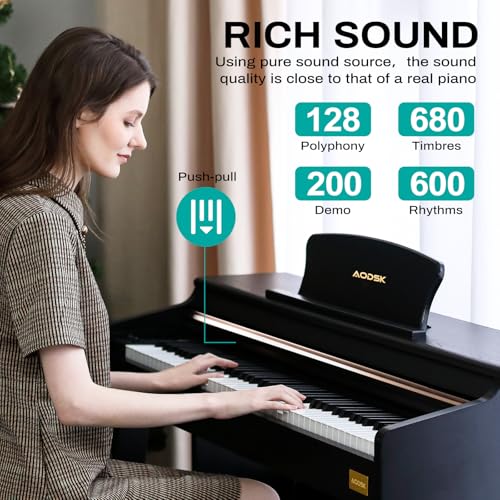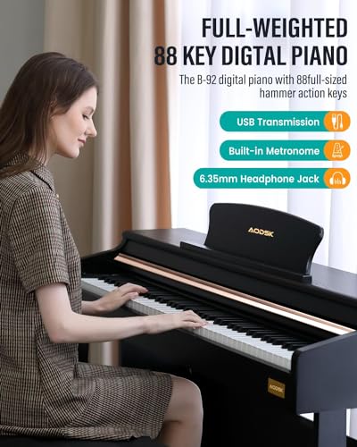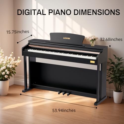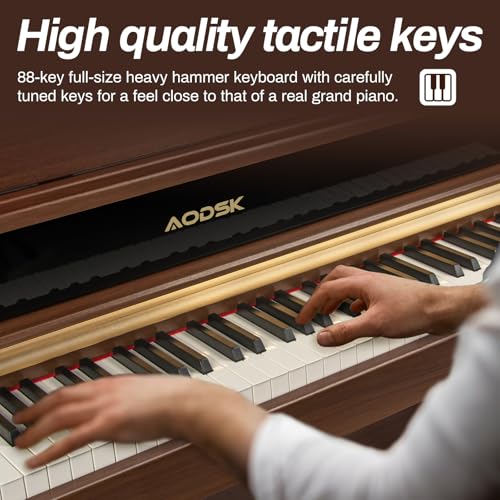 AODSK 88 Key Digital Piano,Weighted Hammer Action Digital Piano with Full-Size Weighted Keys,Triple Pedal,Beginner Bundle with Furniture Stand,Slide Key Cover,Piano Lessons