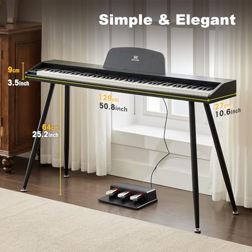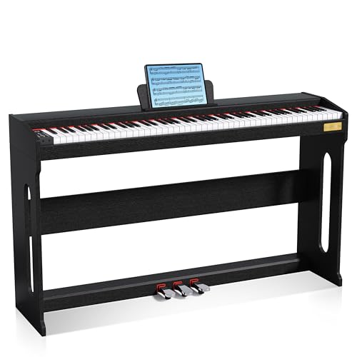 MUSTAR 88 Key Piano Keyboard for Beginners, Semi Weighted Electric Piano Keyboard 88 Keys, Portable Digital Piano 88 Key Weighted with 3-Pedal Unit, Built-In Speakers, USB/MIDI Connecting (Black)