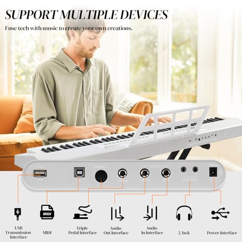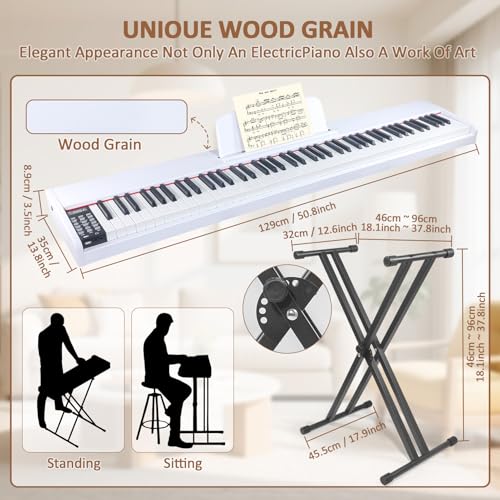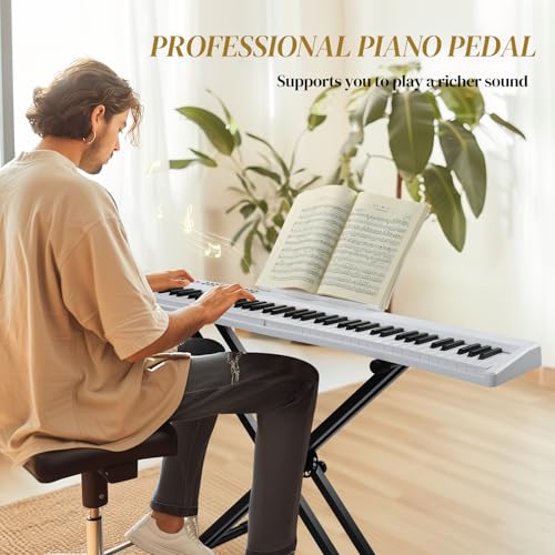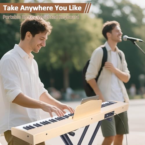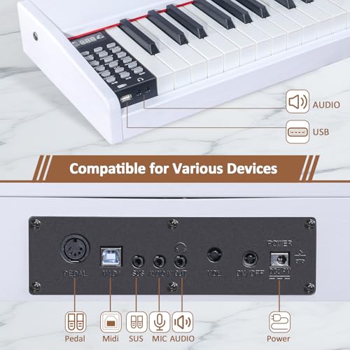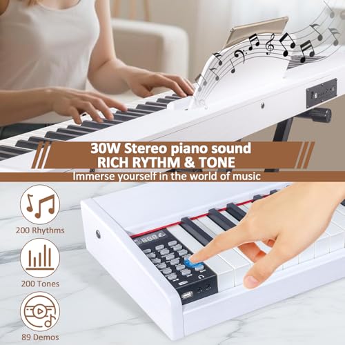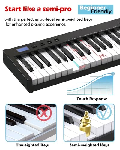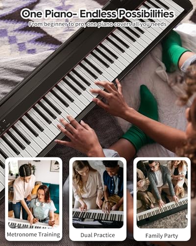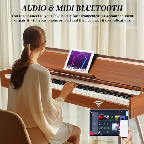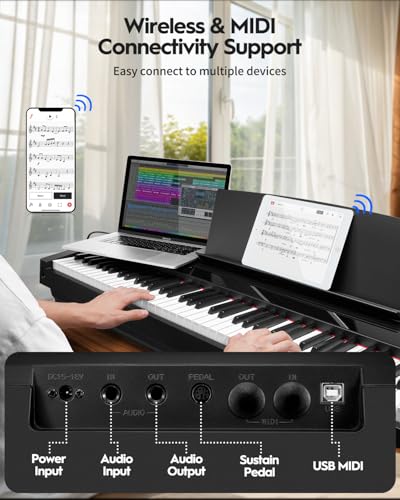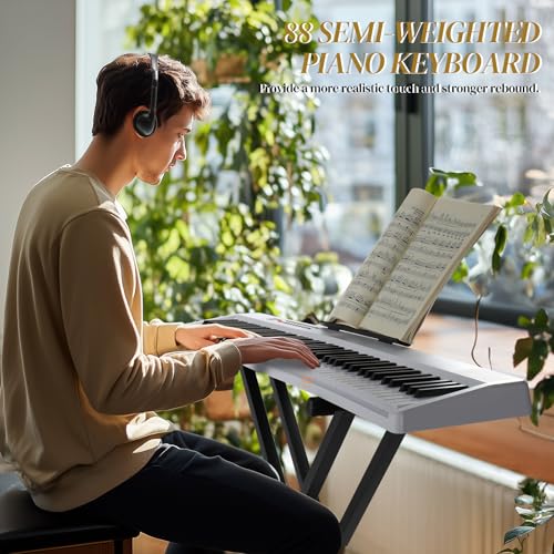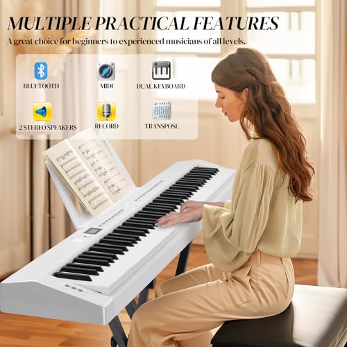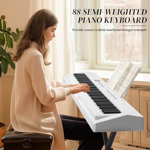 88 Key Digital Piano, Semi Weighted Electronic Keyboard Piano with Music Stand, Power Supply, Sustain Pedal, Bluetooth, MIDI, for Beginner Professional at Home, Stage