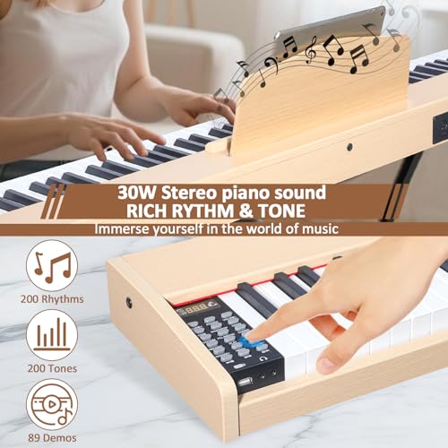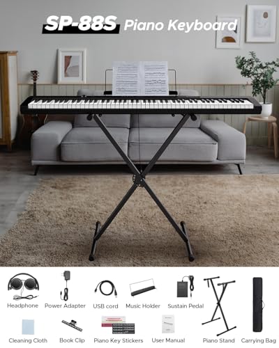 88 Key Digital Piano Keyboard,88 Key Full Size Weighted Hammer Action Electric Keyboard Piano with 200 Rhythms,200 Tones, Piano Keyboard with Stand, TriplePedal,Headphone, Carrying Bag/hs