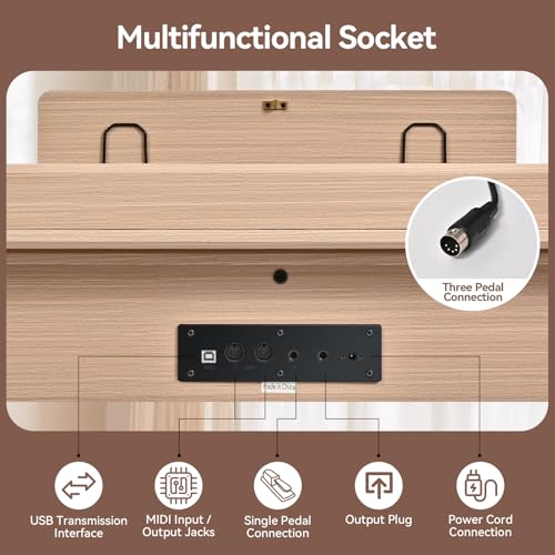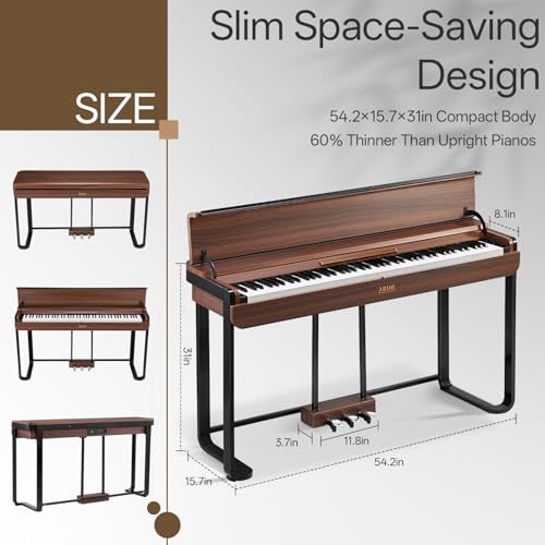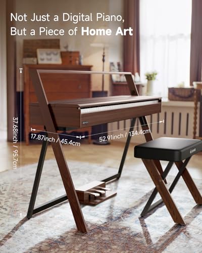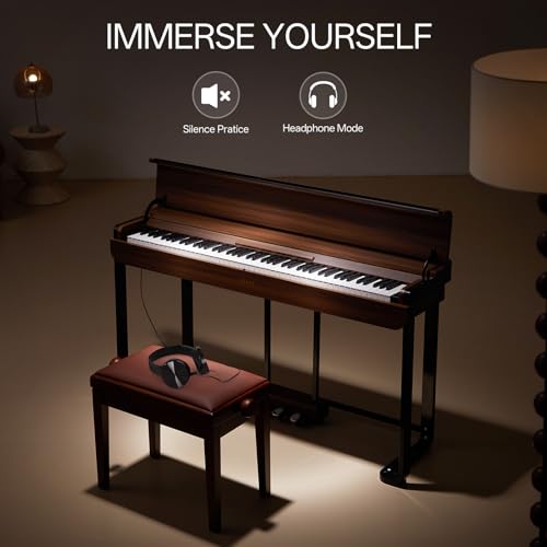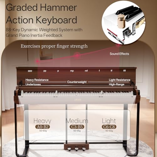 AKLOT Modern Weighted Keyboard Piano: 88-Key Graded Hammer Action Digital Piano, Silent Soft-Fall Cover, U-Stand, Triple Pedal, MIDI, Headphone, Beginner Lesson Book (AUR-LS03 Satin Walnut)