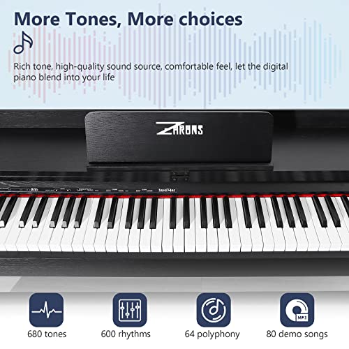 STRICH Digital Piano 88 Key Full Size Weighted Keyboard, Hammer-Action Portable Electric Piano For Beginner Adults, Bundle With Sustain Pedal, Piano Stickers, Music Rest, Black, SDP-P7