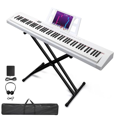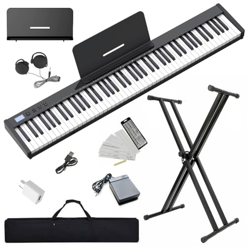 Ktaxon Weighted Keyboard Piano 88 Keys Digital Piano with Adjustable Dual "X" Shape Stand, Portable Bag, Professional Pedal, Stereo Headphones and Smart MIDI Bluetooth Function(Weighted Key-Black)