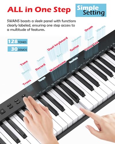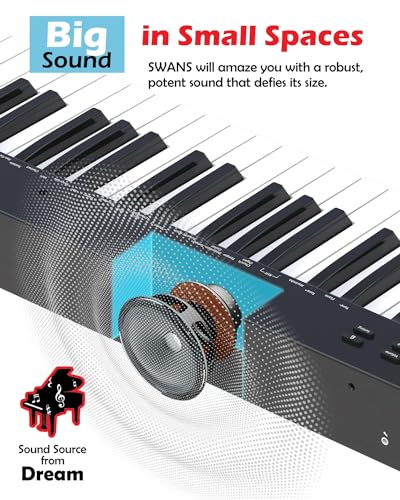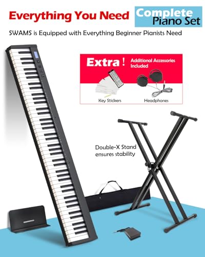 NikoMaku Semi-weighted 88 Keys Piano Keyboard Compact Portable Digital Piano Set for Beginners with Stand, Carrying Case, Sustain Pedal, Headphones, SWAN-S Black
