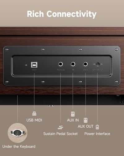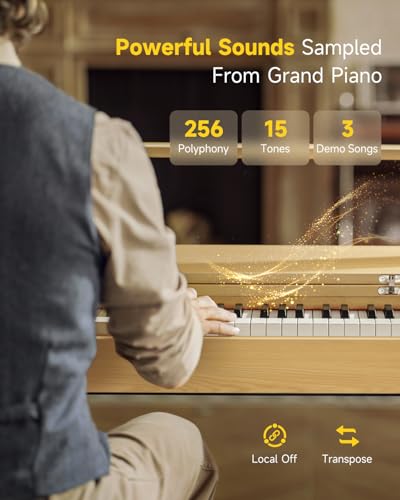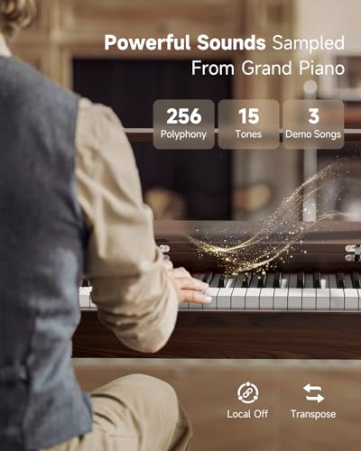 Donner OURA R300 88 Key Weighted Keyboard Piano for Advanced, Home Digital Piano with 88 Keys Graded Hammer Standard Keyborad, Bluetooth, LOCAL OFF, 2*15W, Half-pedal, 256 Polyphony, Walnut Wood Color