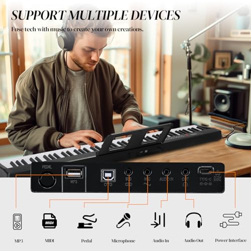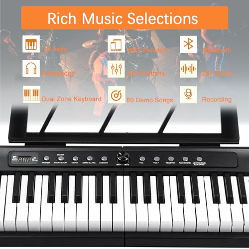 Ktaxon 88 Key Weighted Keyboard Piano Digital Piano with Dream Sound Chip, MIDI/USB Connectivity, Works with Music Software Includes Headphones, Sticker, Music Clip, Dustproof Cloth(Black)