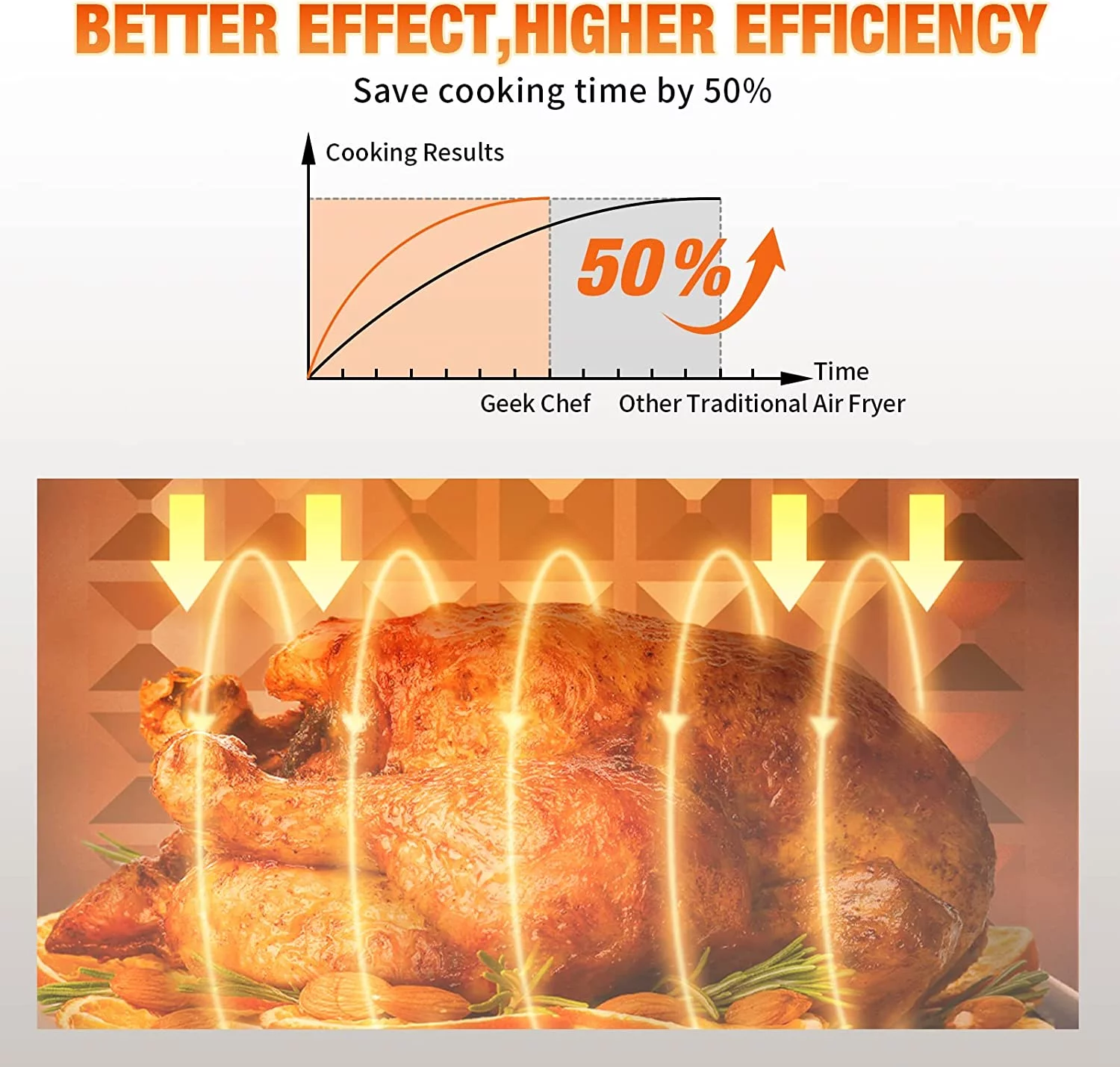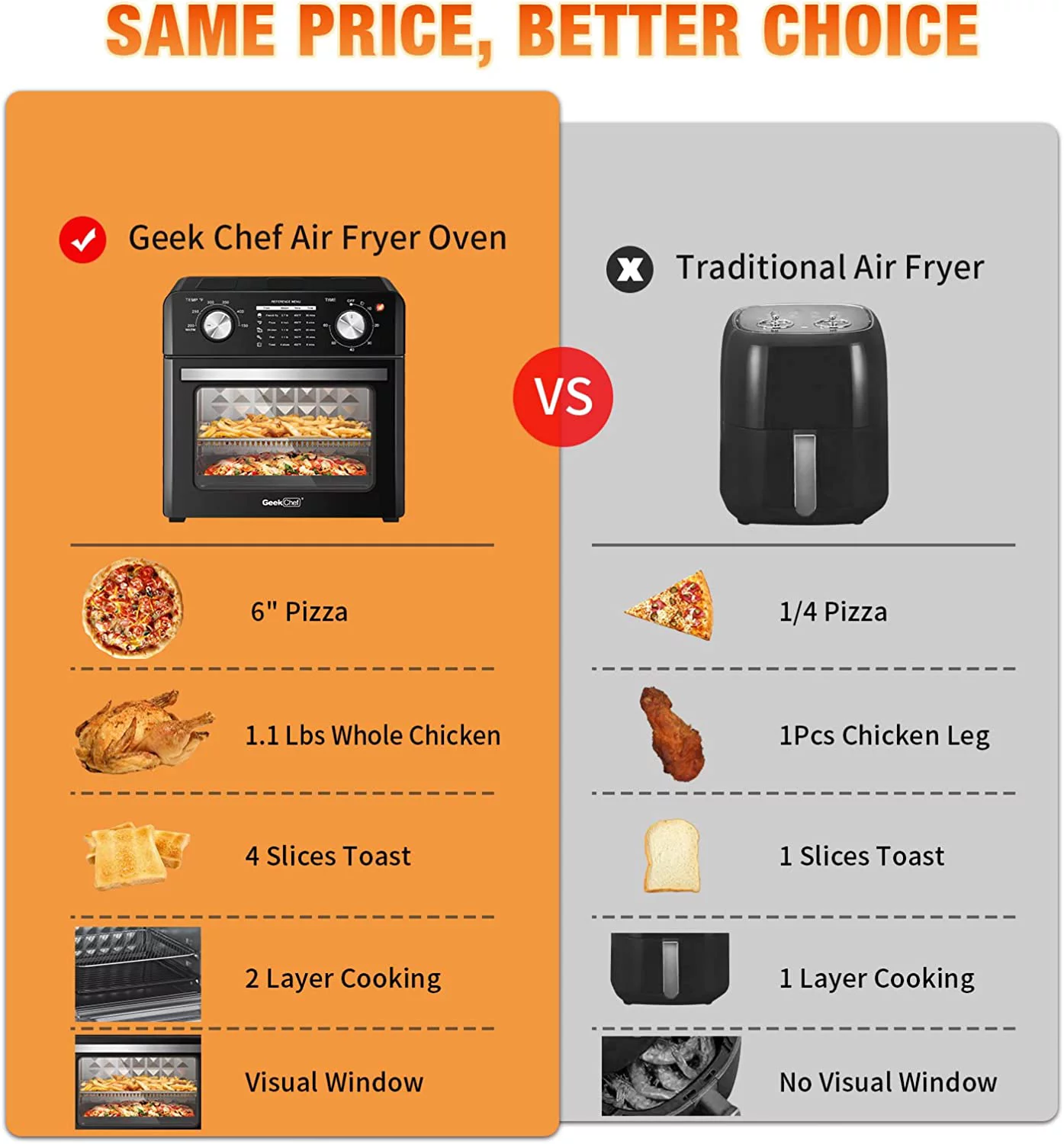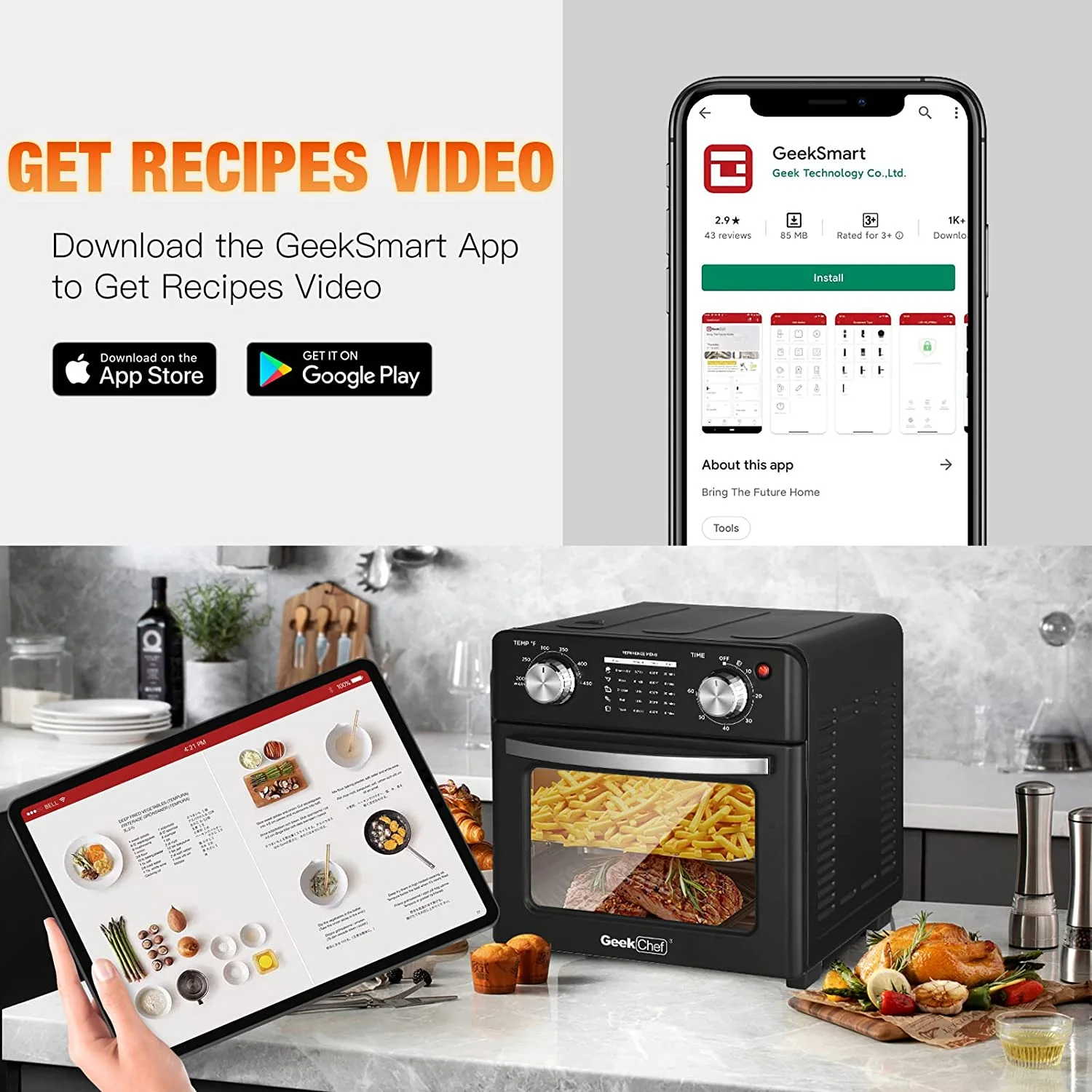 Geek Chef Air Fryer Oven 10 Quart, Oil-less Air Fryer Toaster Oven with Digital Recipe, 1400W, Black
