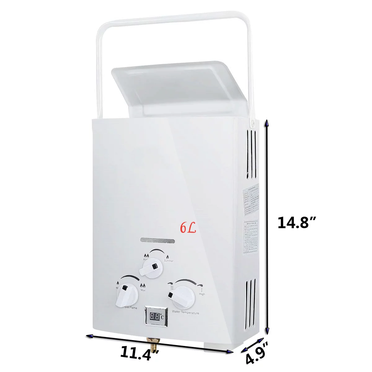 TC-HOME 1.6 GPM 6L Portable Tankless Water Heater LPG Liquid Propane Gas Instant Hot Boiler with Digital Display for Outdoor RV