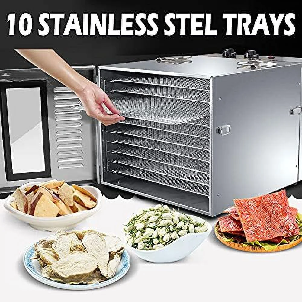 Food Dehydrator,10 Trays Digital Stainless Steel Dehydrator 1000W Meat Dehydrator Jerky Dryer For Food Meat Herbs Fruit Vegetable, Adjustable Time & Temperature Control