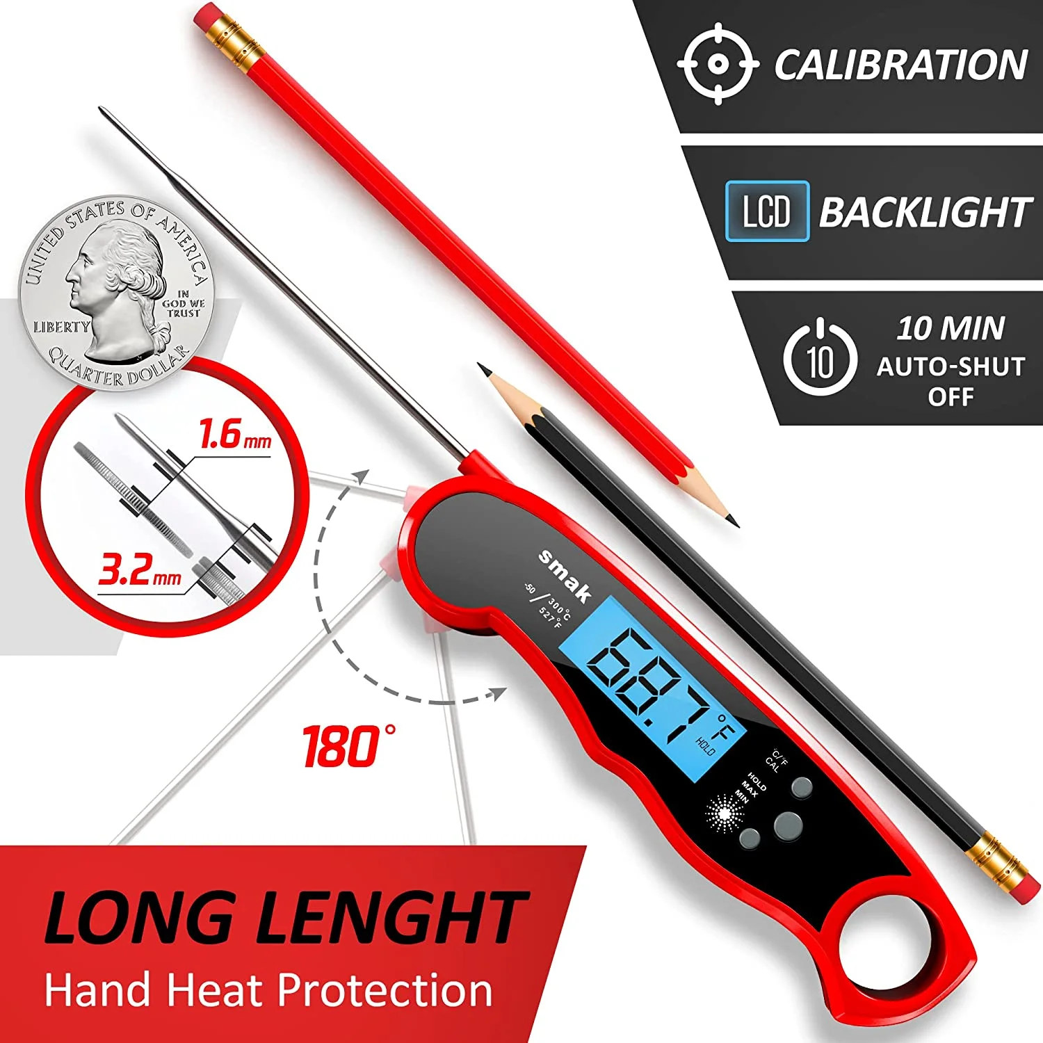 Digital Instant Read Meat Thermometer - Waterproof Kitchen Food Cooking Thermometer with Backlight LCD - Best Super Fast Electric Meat Thermometer Probe for BBQ Grilling Smoker Baking Turkey (Plum)
