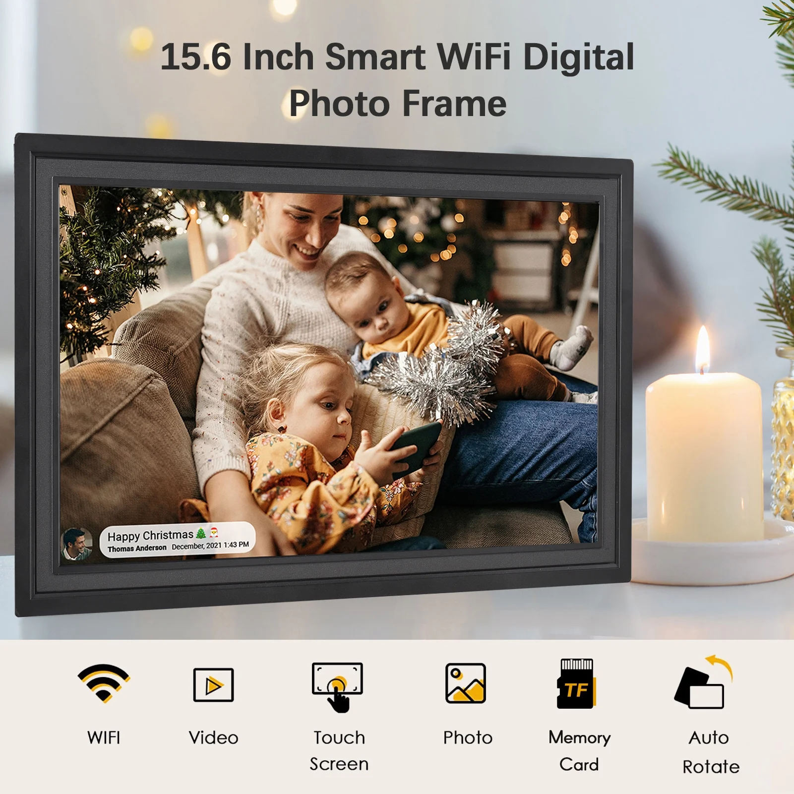 Anself WiFi Digital Photo Frame 15.6-Inch TFT Screen 16GB Storage Auto Rotation
