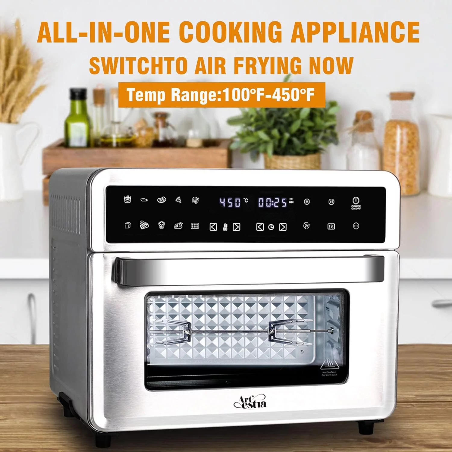 Oven Air Fryer, 26QT Extra Large Toaster Oven Air Fryer Combo With Rotisserie And Dehydrator, Digital Countertop Convection Oven Airfryer Fit 10" Pizza, 7 Accessories,1800W (Digital Countertop)