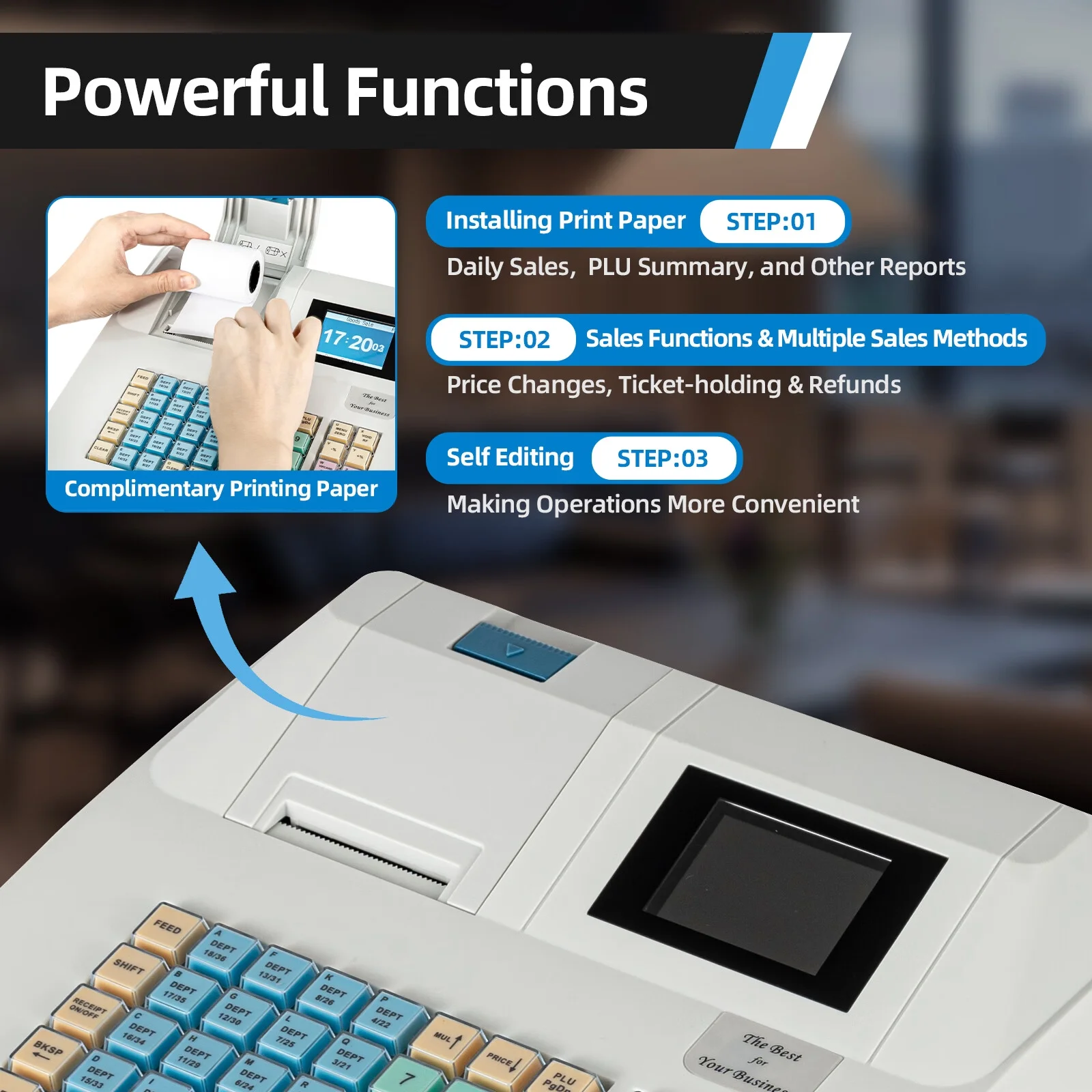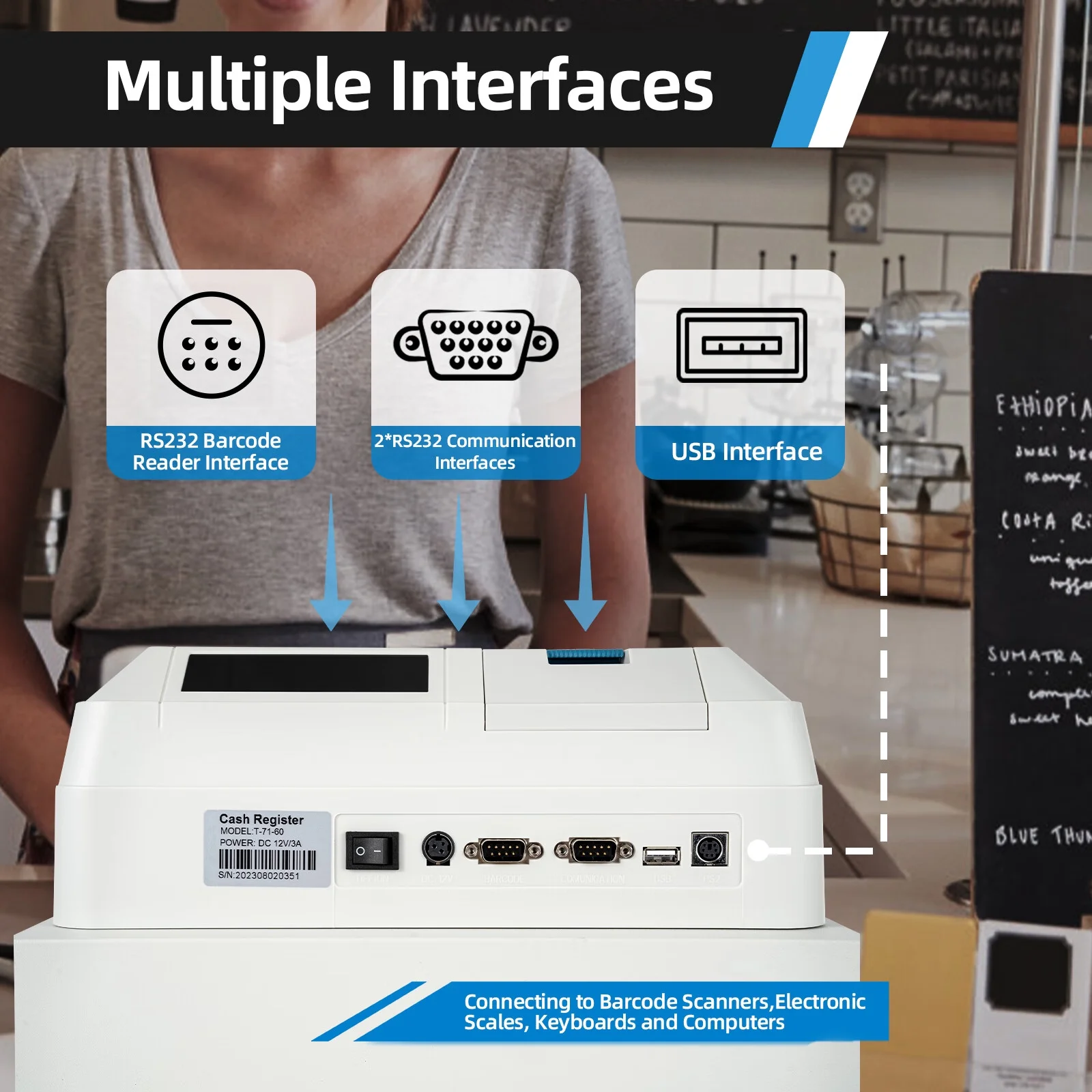 Aiqidi Electronic Cash Register POS Syetem 48 Keys 8 Digital LCD Display Casher with Flat Keyboard and Drawer Box for Retail Restaurant Shop 110V