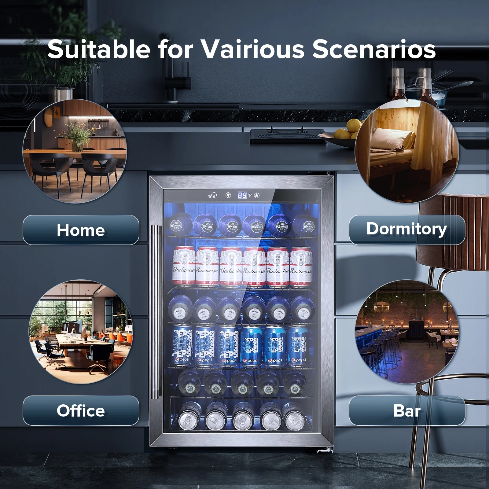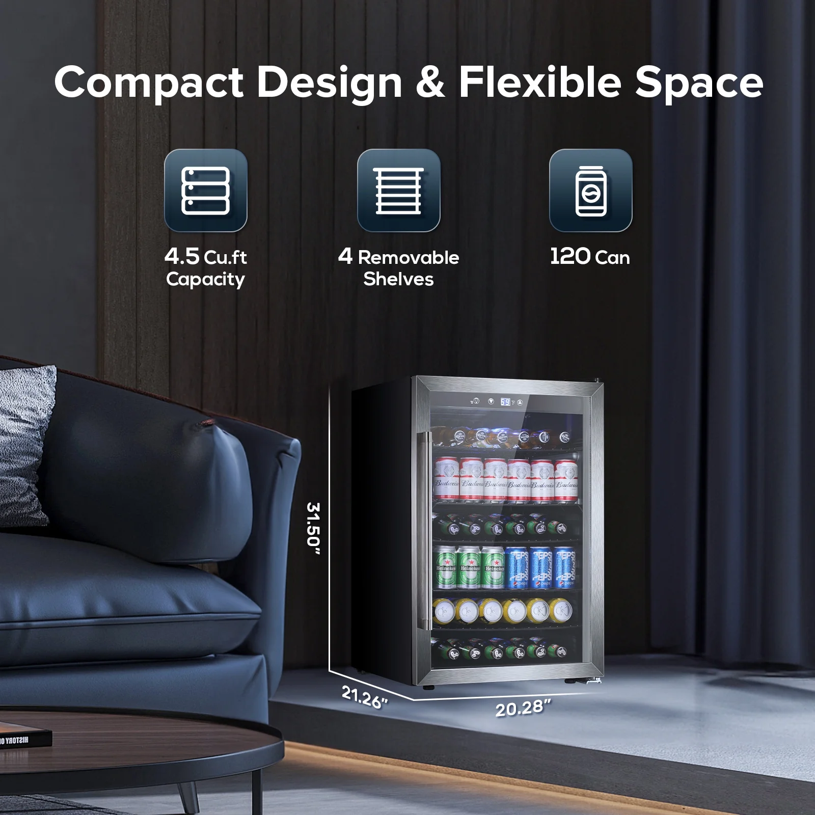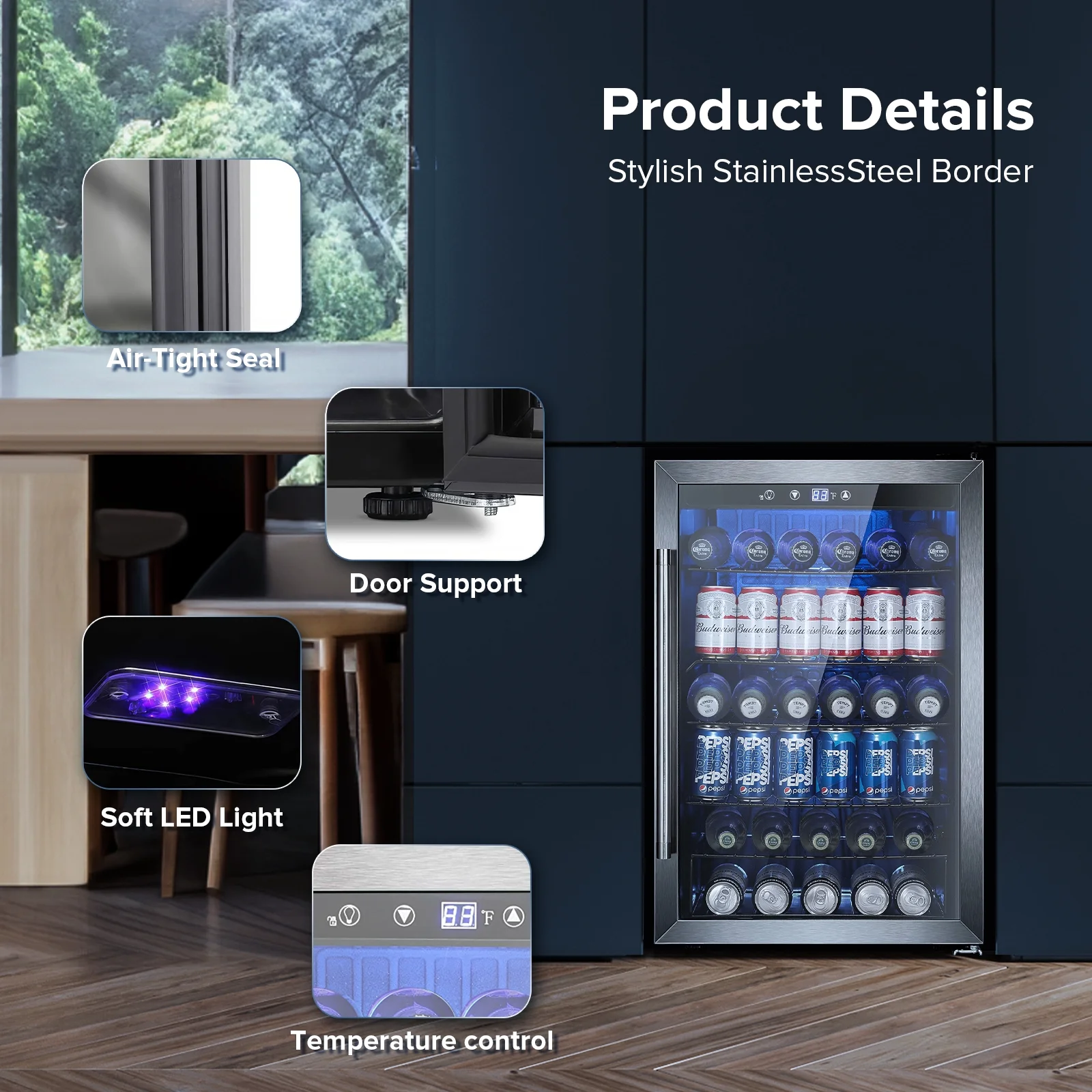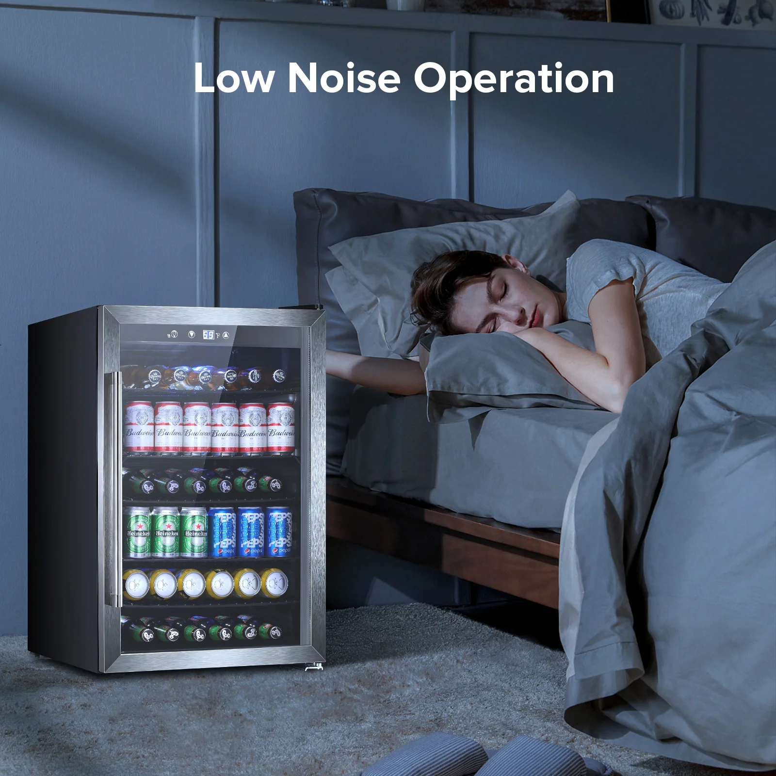 Auseo 4.4 Cu.ft Beverage Refrigerator Cooler, 37 Bottles Mini Fridge with Glass Door for Soda, Beer and Wine, Adjustable Removable Shelves, Digital Temperature,Low Noise for Bar/Office/Home/Restaurant