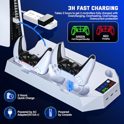 AMZDM Cooling Station PS5 Slim Stand PS5 Pro Cooling Fan with Charging Station PlayStation 5 Console Cooler with Docking Station Controller Charger PlayStation 5 Pro & Slim Disc & Digital White
