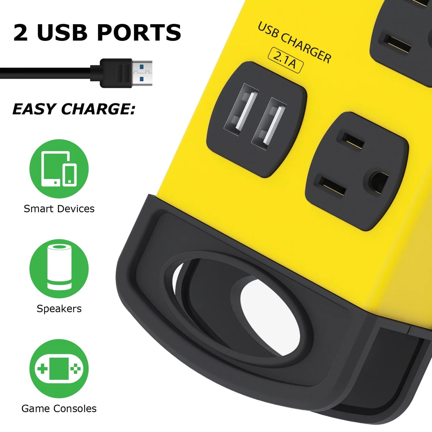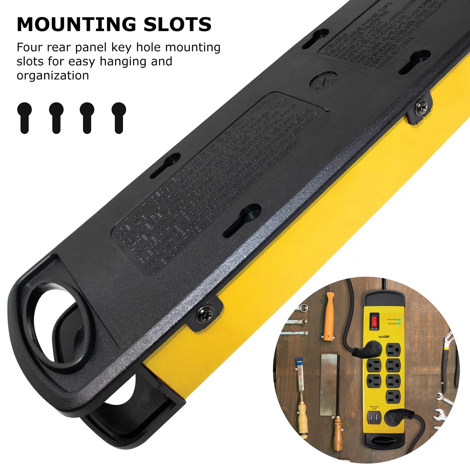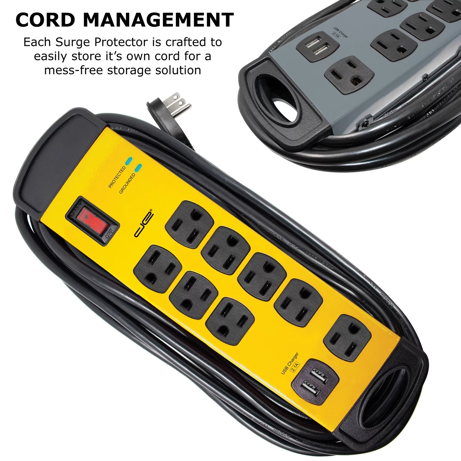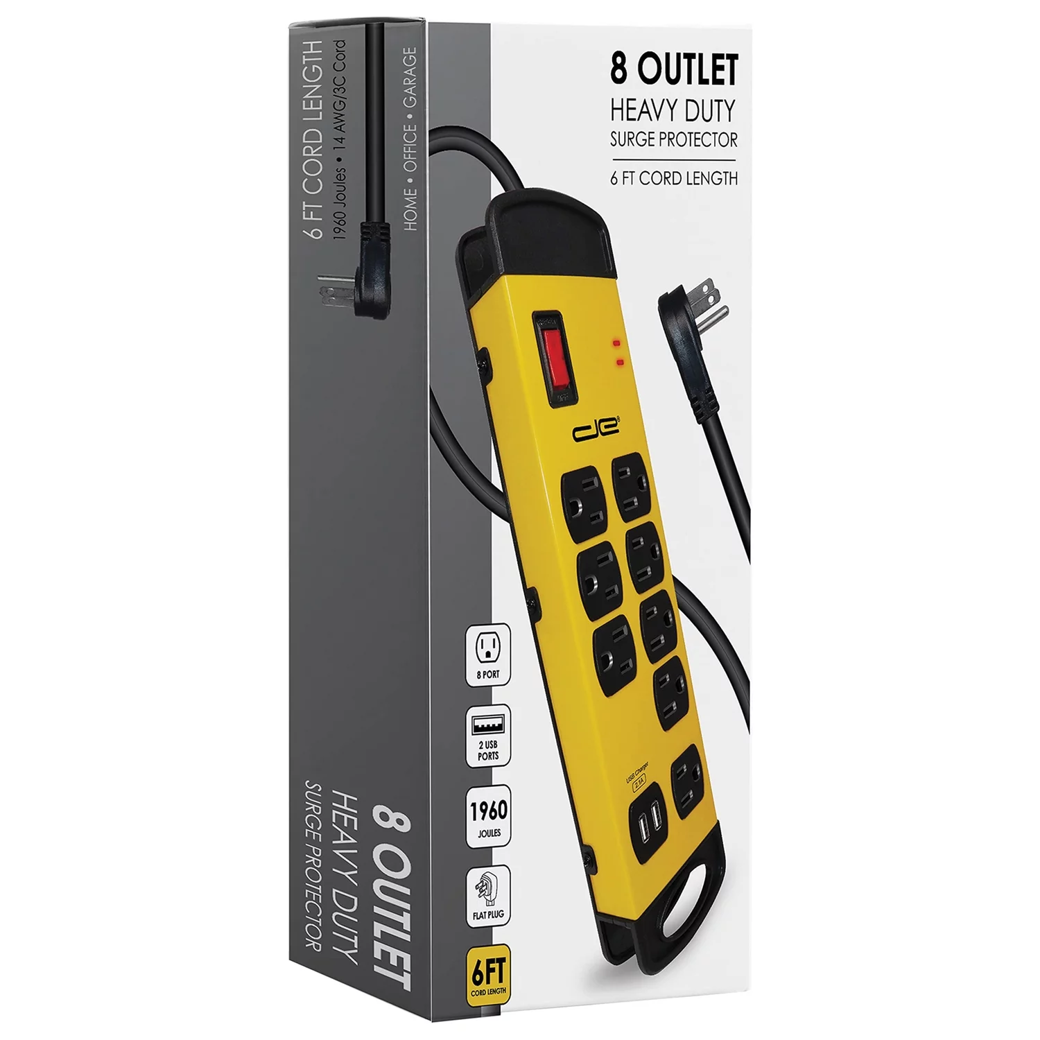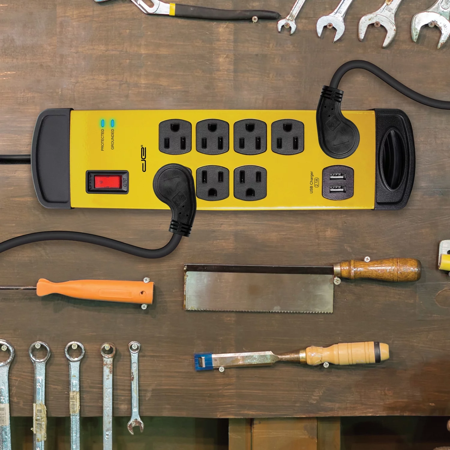 Digital Energy DEE1-1130 8-Outlet Metal Surge Protector Power Strip with 2 USB Ports (Yellow/Black, 6-Foot Cord)